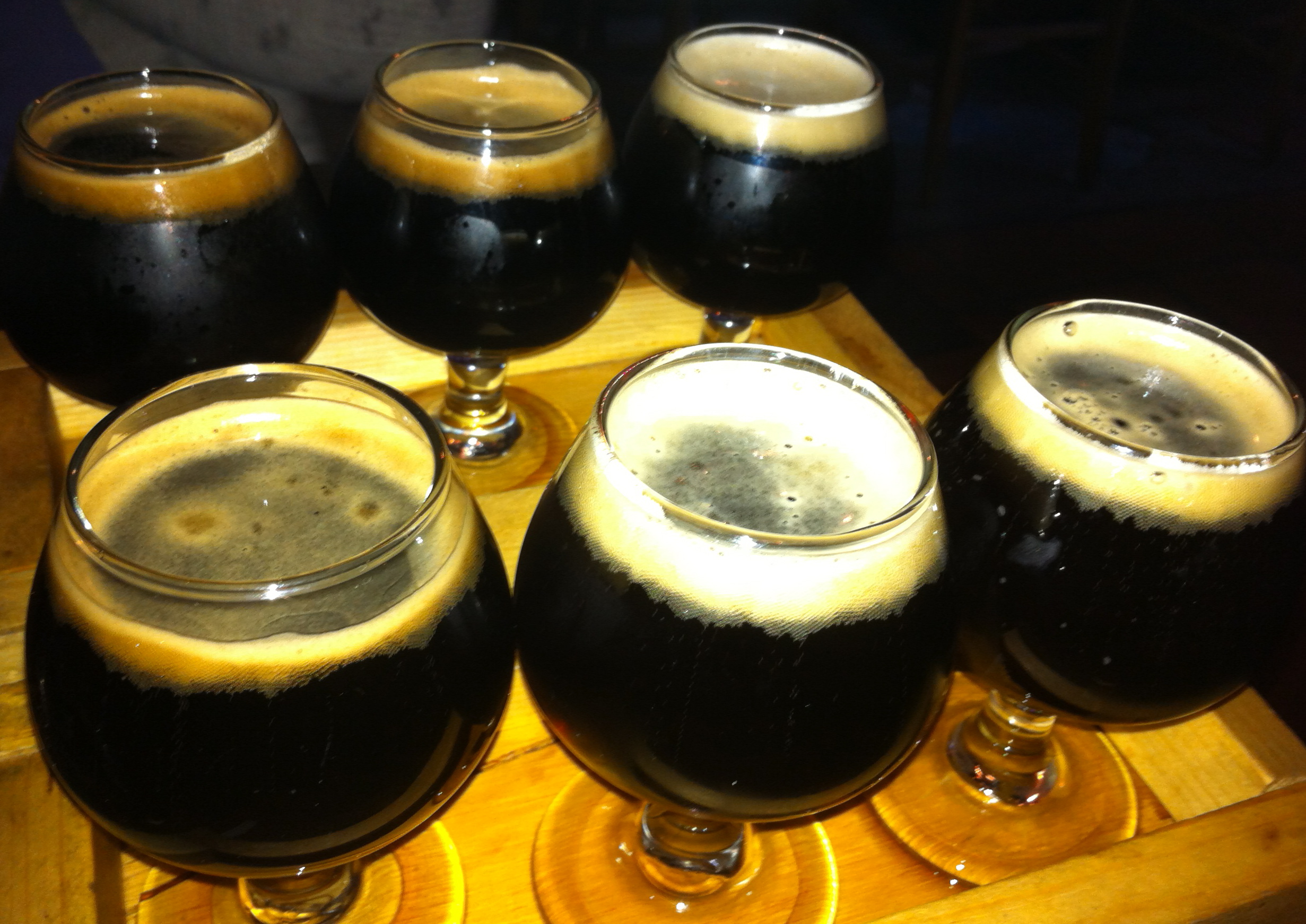 One of our readers (thanks, V.S.!) pointed out that The Porter Beer Bar has an amazing beer menu, and since Date Night is always open to tips and suggestions, we decided to check it out for ourselves. We are overwhelmed with a 23-page beer menu (and we are talking small print with minimal spacing). Choosing one beer is extremely difficult, and while we are narrowing things down, we notice that there are flights available. Date Night loves sampling, so ordering 2 (different) flights seems like a reasonable solution to our “problem”!