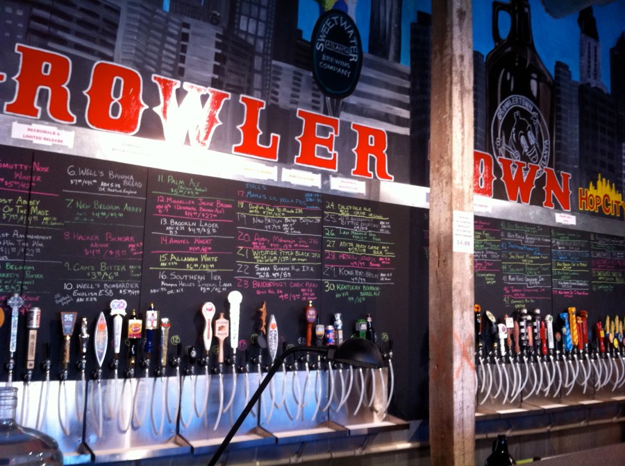 “We have nine pizzas on the menu,” the woman at the counter says to us. “You can’t change the ingredients on any of them because they are all perfect.” That boast starts out Date Night as we hit Atlanta’s hottest pizzeria. The local paper loves this place and we have two glowing recommendations (thanks, Luis and Brooke!). Before we find out if the pizza is perfect, we must digress. Antico allows you to bring your own beverages, so that means a trip to nearby Hop City, the best beer store in Atlanta, for something to go with our meal.