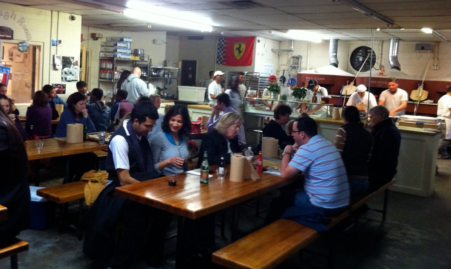 Eve is in the bathroom when our pizza arrives, and when she returns to the table, she is surprised that it sitting on our table. It is good and tastes like the gen-u-ine pizza that we ate in Italy in 2010. The pizza lasts only a few minutes longer than it took to cook. As we eat, the place starts to quickly fill up with a mixture of Georgia Tech professors, families with kids, and people (like us) who just got done with work. You have to get to Antico early, because they run out of table space and then you must eat standing up. Even when they are crowded, they were still churning out the pizzas, so it will take you longer to order than it will for them to cook it. One more reason to get there early: they only make pizza until they run out of dough, which is around 9PM every night.