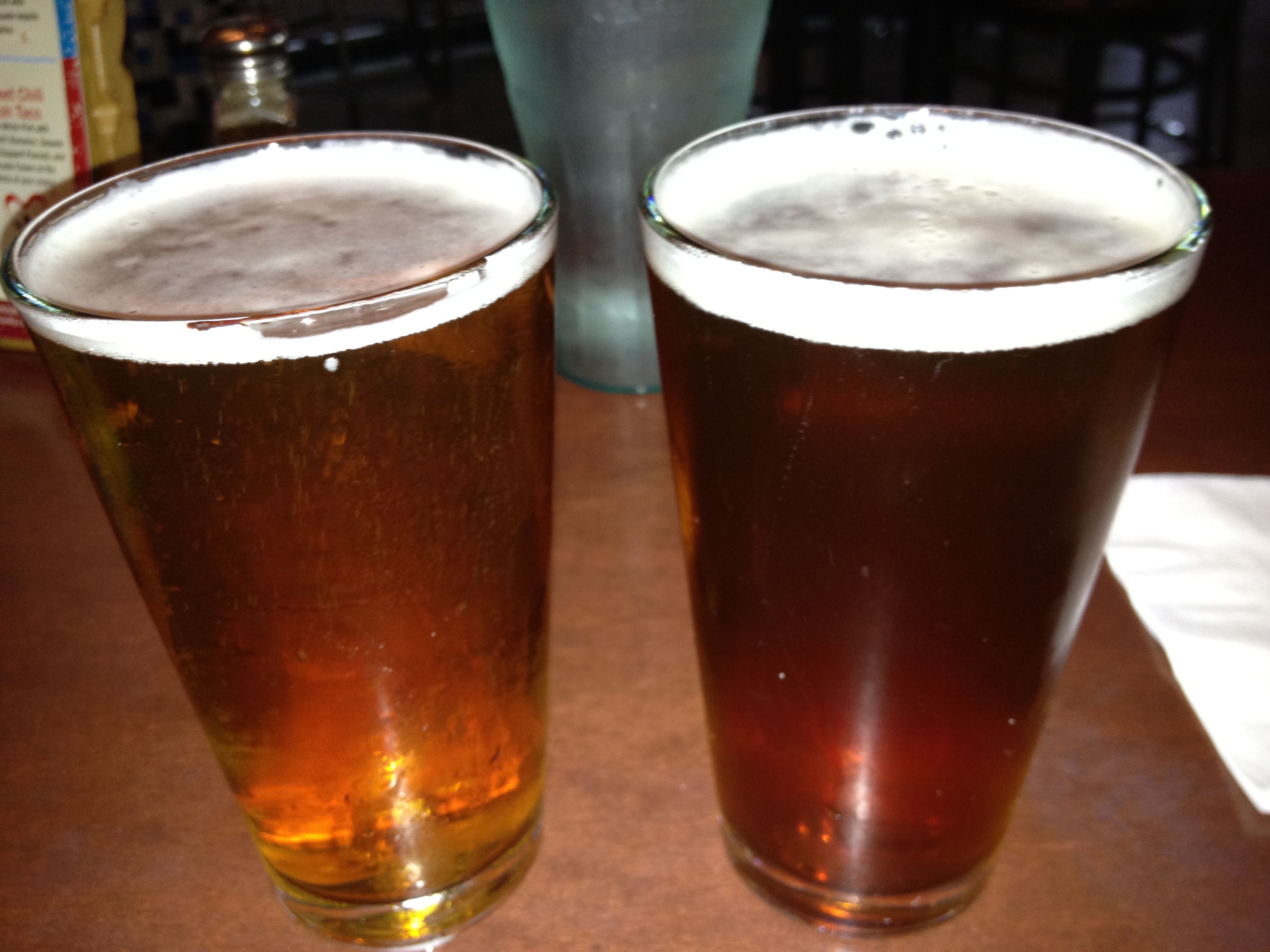 I order the Brooklyn Lager, a quick visit with my iPhone tells me that it’s 5.2% alcohol. Roger goes for the Red Hare Lager, it’s a lighter beer than he normally chooses, but sometimes in the warmer weather you just feel like going lighter. Both choices are excellent, and there are no regrets!