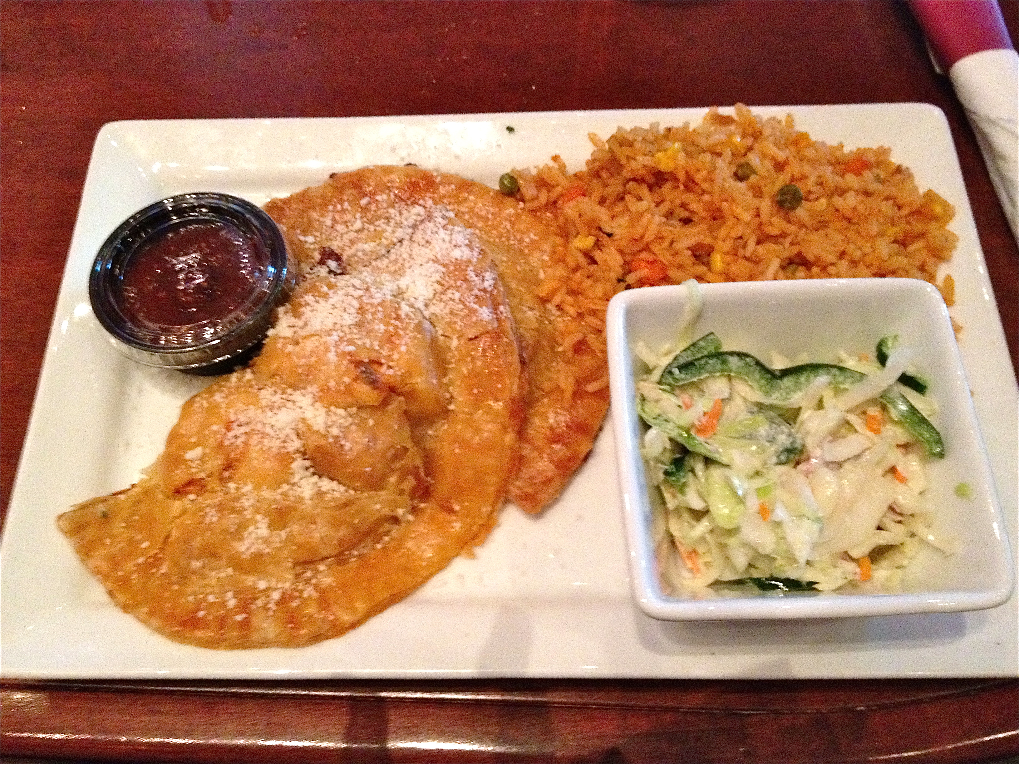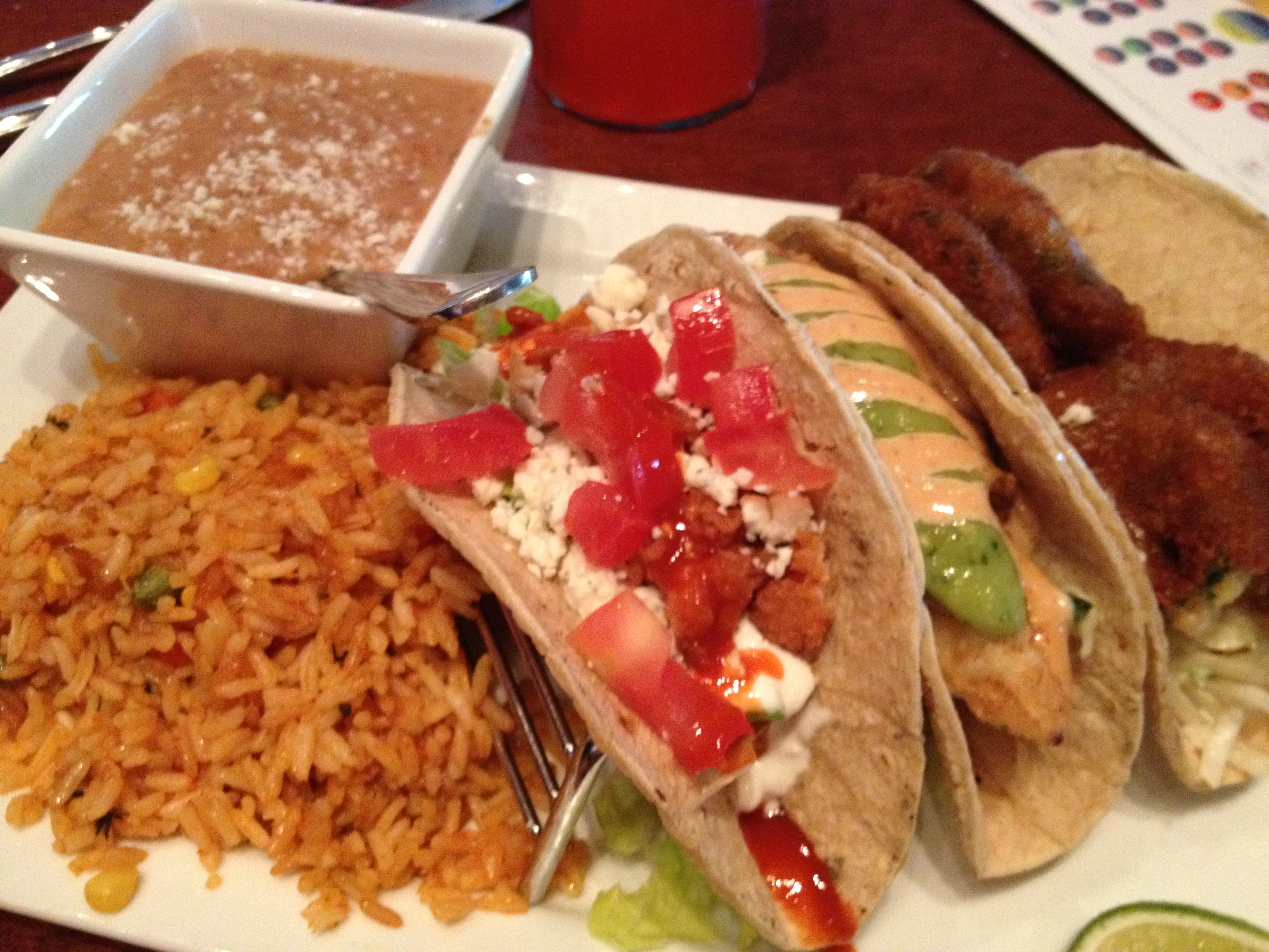 I go with the chicken chipotle empanadas. I substitute the poblano slaw for my refried beans, each of us made a change to the menu, but only mine comes out just the way I wanted it.