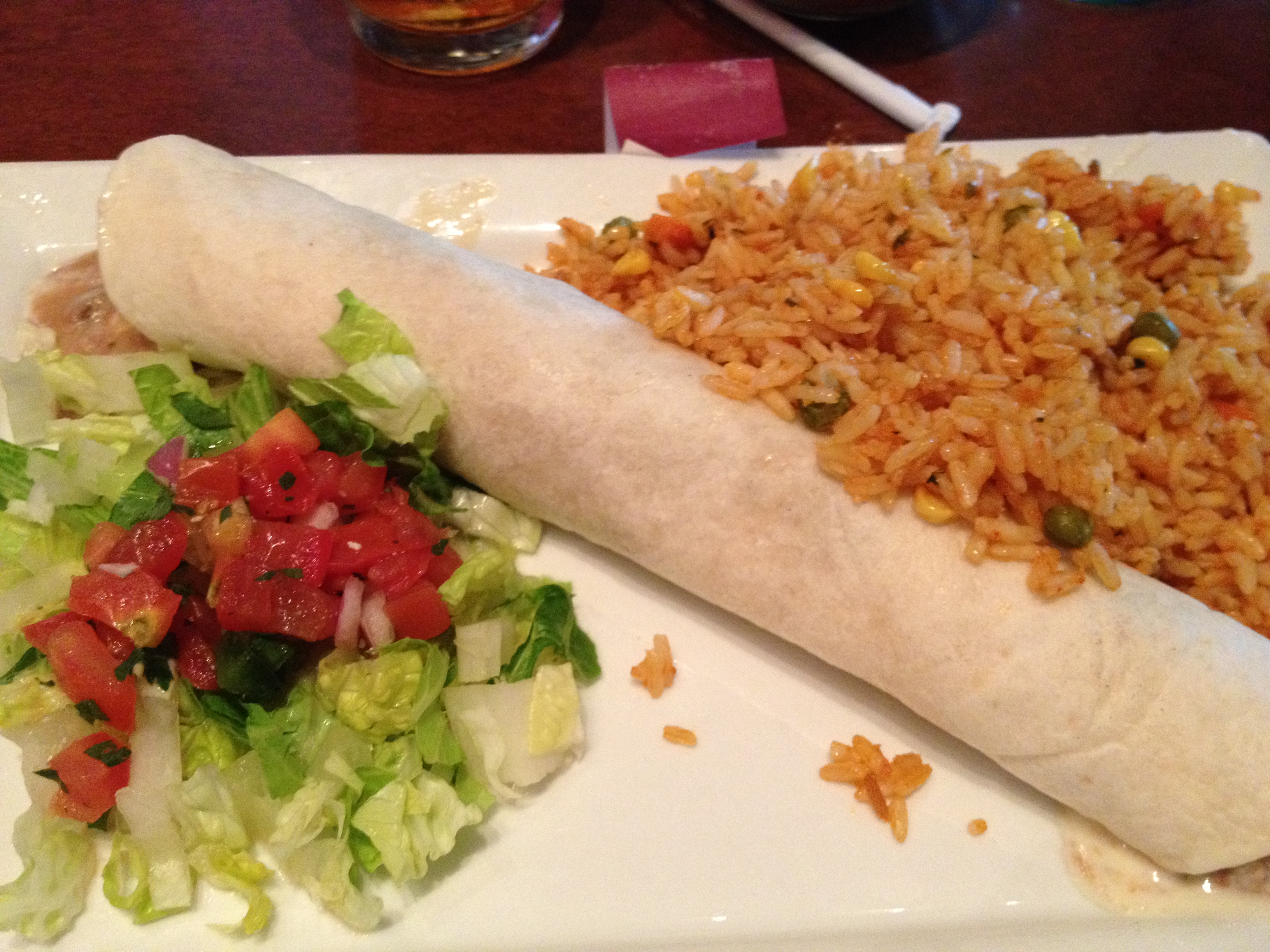 We are all enjoying our meals, the food is good and we think it’s comparable to Chuy’s (which Date Night visited in March). It’s plentiful enough for us to get a “to go” box which contains more than enough food for another meal, but perhaps the basket of chips, and the refill of the basket of chips had something to do with us feeling stuffed!