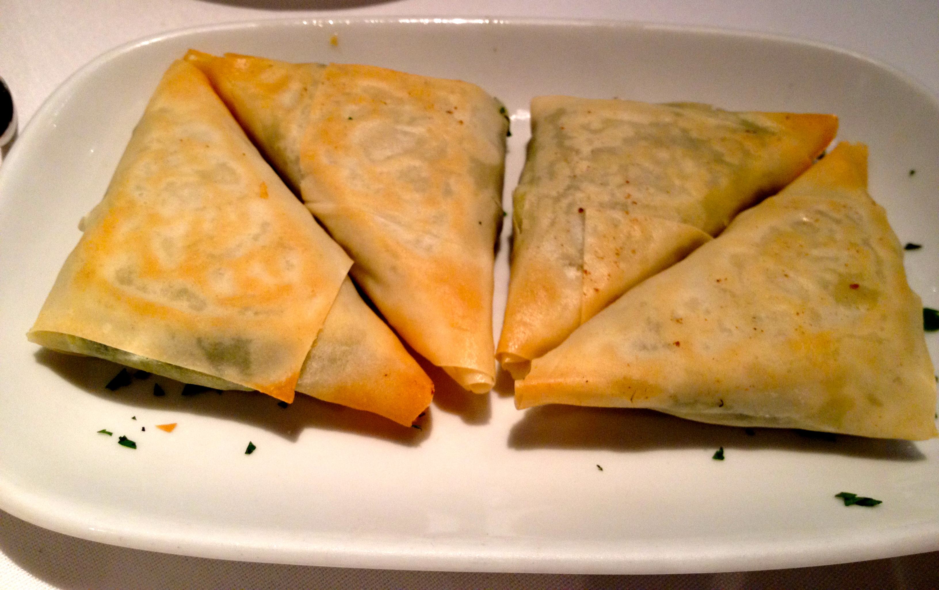 As you can see, these are perfect for sharing. They are filled with spinach and feta cheese. You get just a hint of feta in there, which is good, because Eve is not a feta fan.