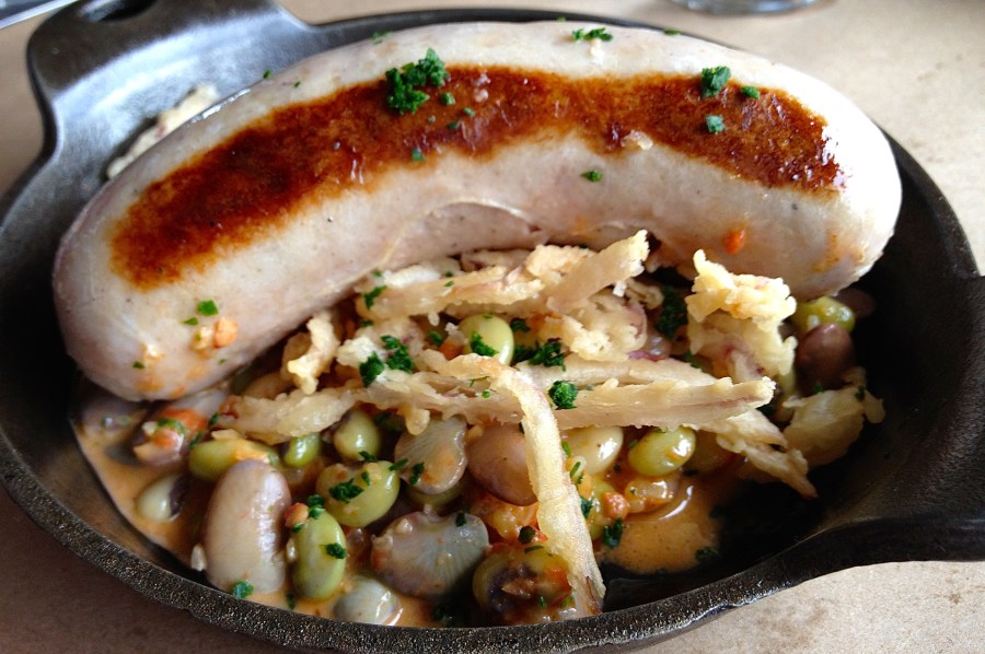 We don’t like to use a lot of superlatives on Date Night, but like the oysters, this is one of the best brats we have ever had. It was so moist in the middle, and the butter beans were the perfect compliment to the dish. They make and stuff the brats in house and they really nailed this dish.