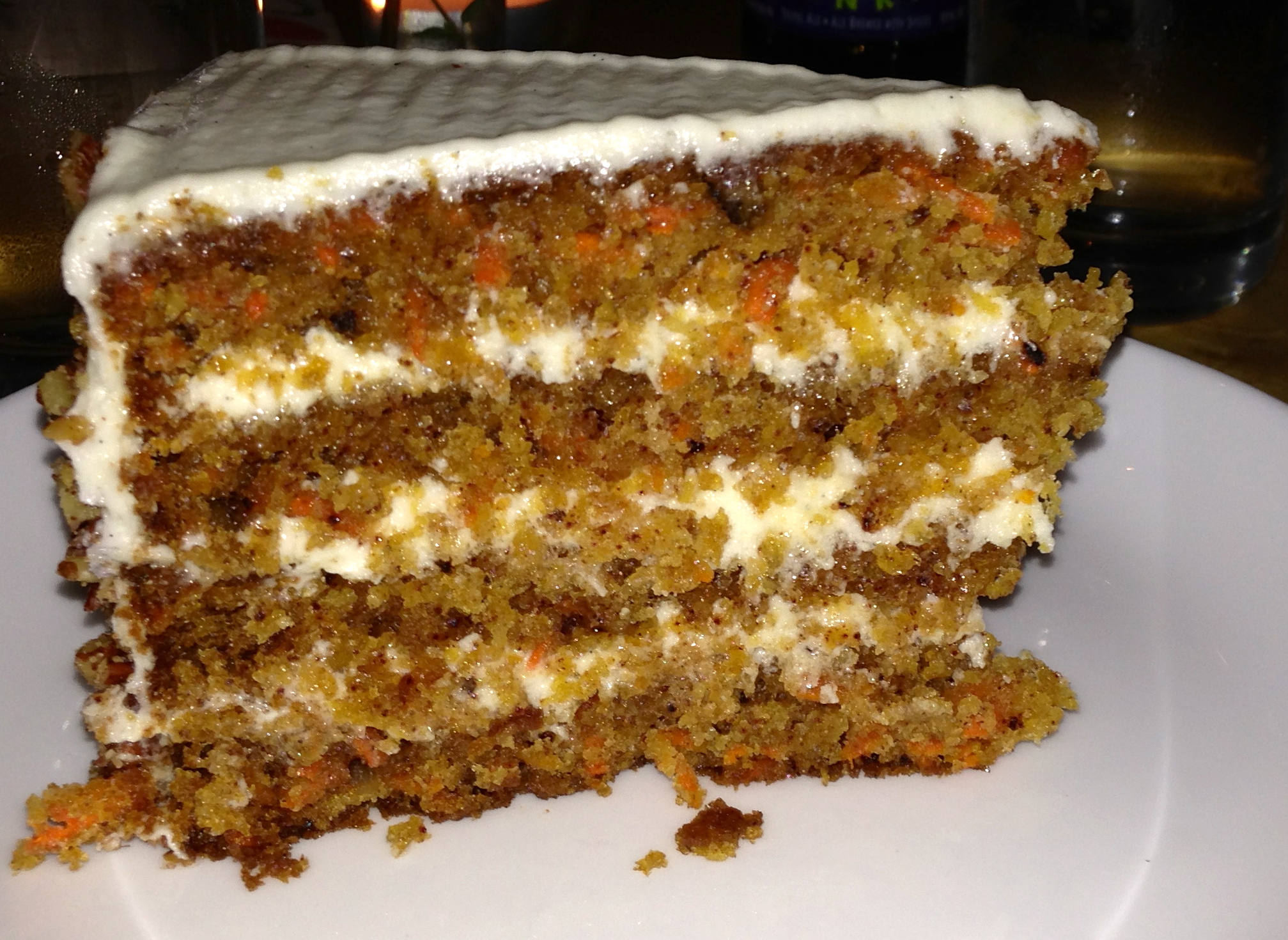 Bocado displays their desserts right in the middle of the restaurant. As most people are being seated, or if you have to go to the bathroom, you must walk right by the display. Tonight’s includes lemon cheesecake, chocolate cake, carrot cake, and an apple tart. Eve is nice enough to let me choose, and I go with the carrot cake, which has yet to be cut.