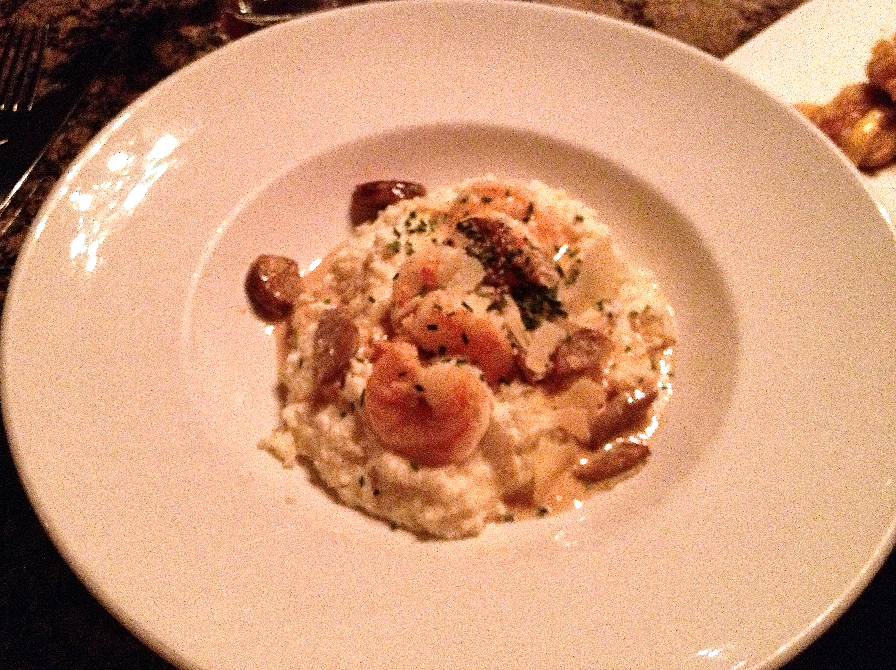 This is an excellent dish, featuring shrimp with andouille sausage and some cheesy grits courtesy of lots of melted parmesan reggiano cheese. The sausage has a little kick to it, which gets cooled by the thick and creamy grits. There are only five shrimp on the plate, but there are plenty of the grits.