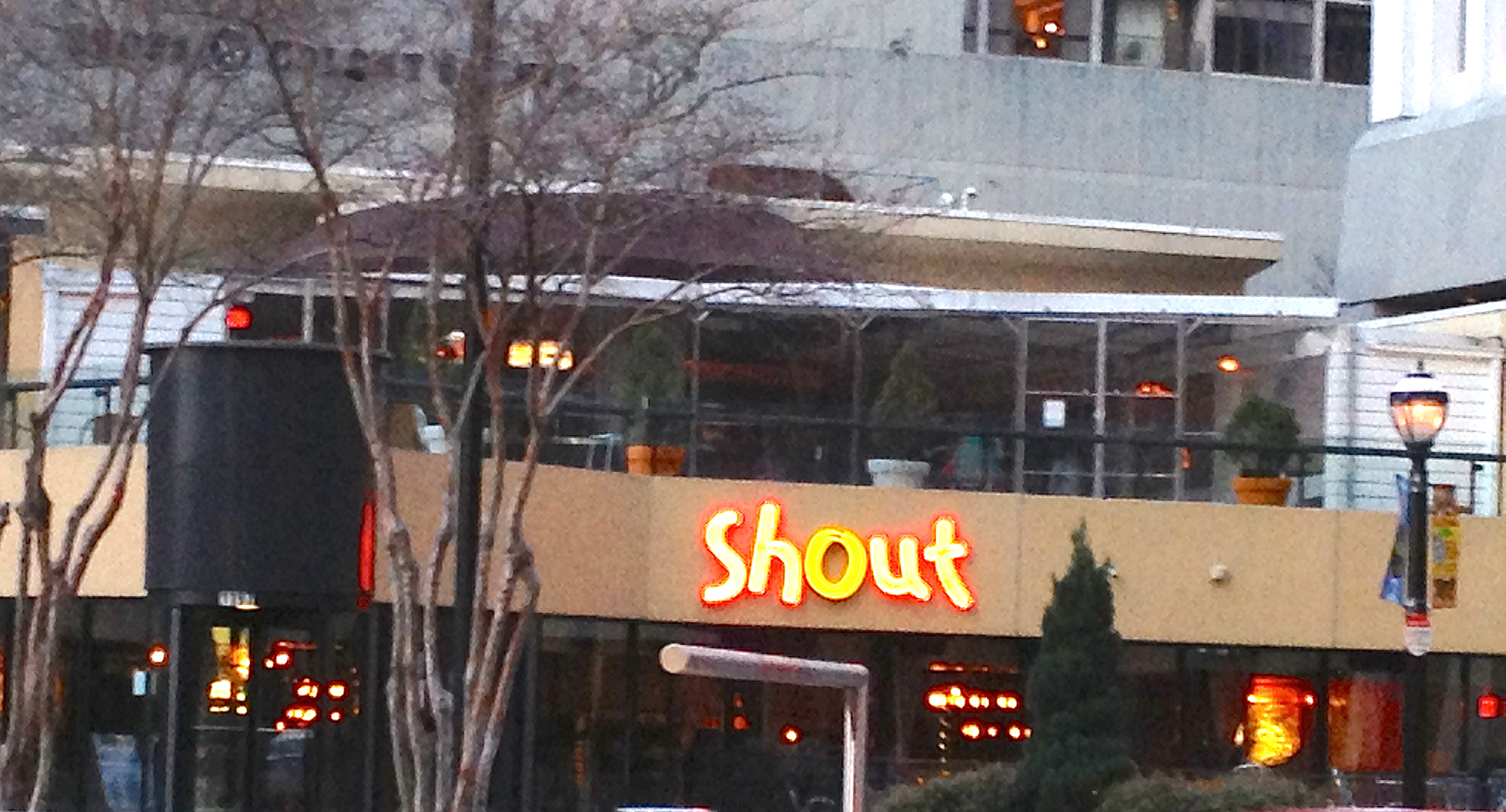 Full disclosure: Because of the theater tickets, Date Night is on Thursday this week. We are joined tonight by the parents (and Date Night subscribers) Boots and Ken-Bob, who last joined us on Date Night #43 last September at La Paz. Ken-Bob knows the right people with the Here To Serve restaurant group, which owns Shout, along with Noche, Prime, Smash, Strip and Twist. Twist and Shout–get it? Very clever. He makes a call as we cross Peachtree, and we are “in”.