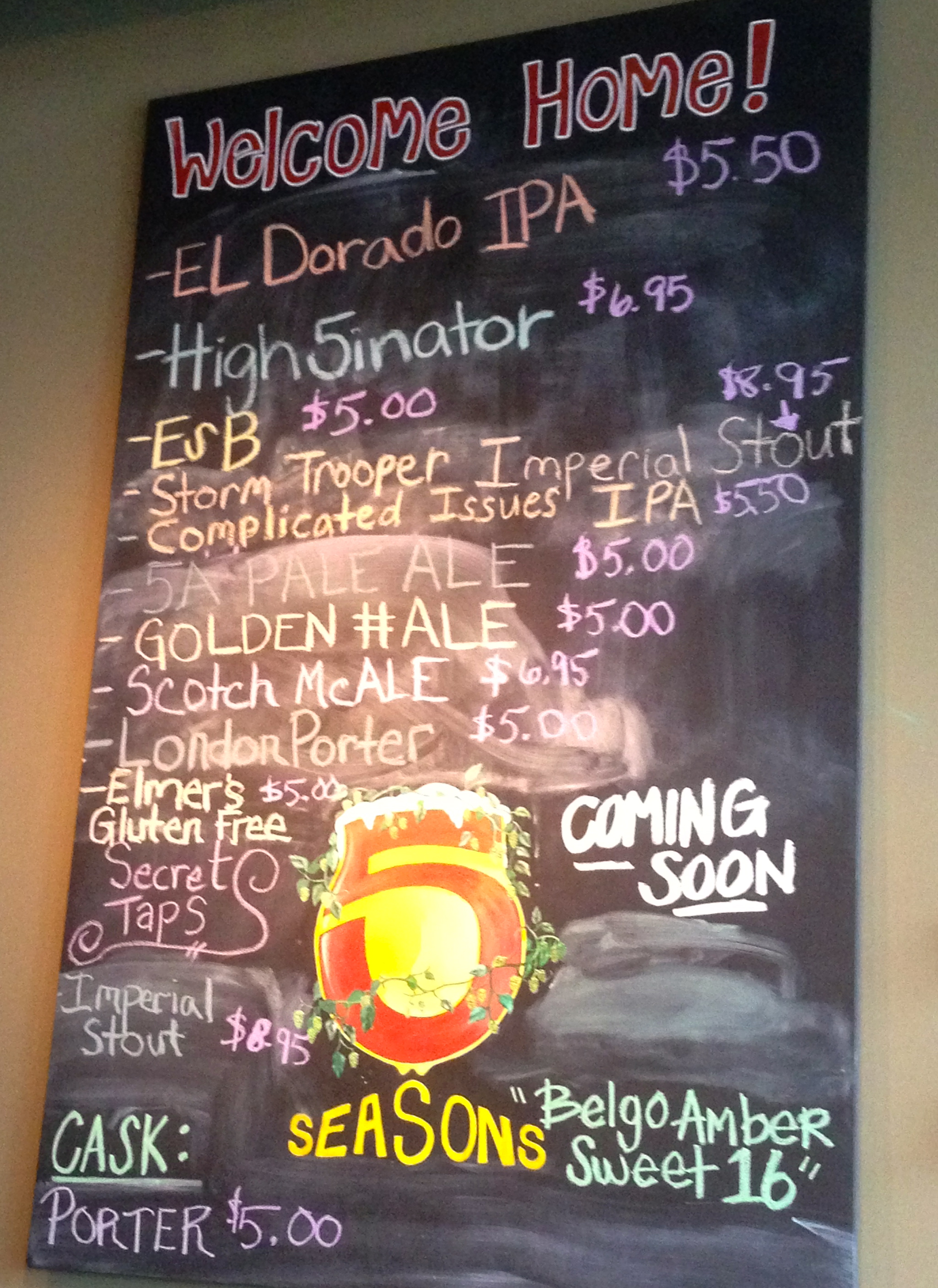 The imperial stout is the better beer of the two. It’s got a lot of alcohol in it and does not overpower with any heavy coffee tastes like some imperials do. The porter is interesting as it is served in a cask at room temperature. It tastes a lot like Guinness, with that creamy Irish stout consistency. 5 Seasons does not post the alcohol content of their beer (they should!), so we can’t say how potent either beer is.