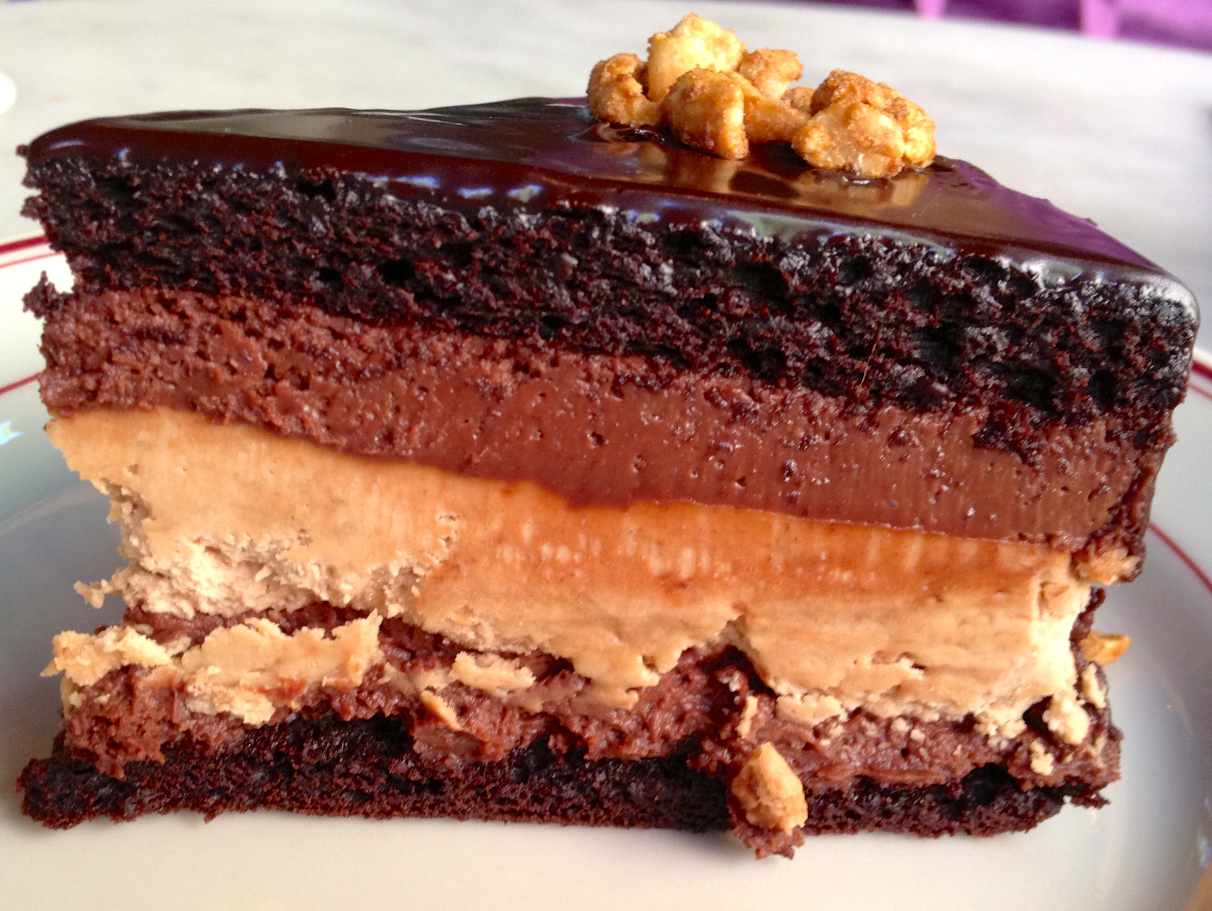 It’s been a rough week, and we need chocolate! We finish our night off with a piece of chocolate peanut butter mousse cake. It tastes like the cake version of a Resse’s Cup. In other words, it’s great!