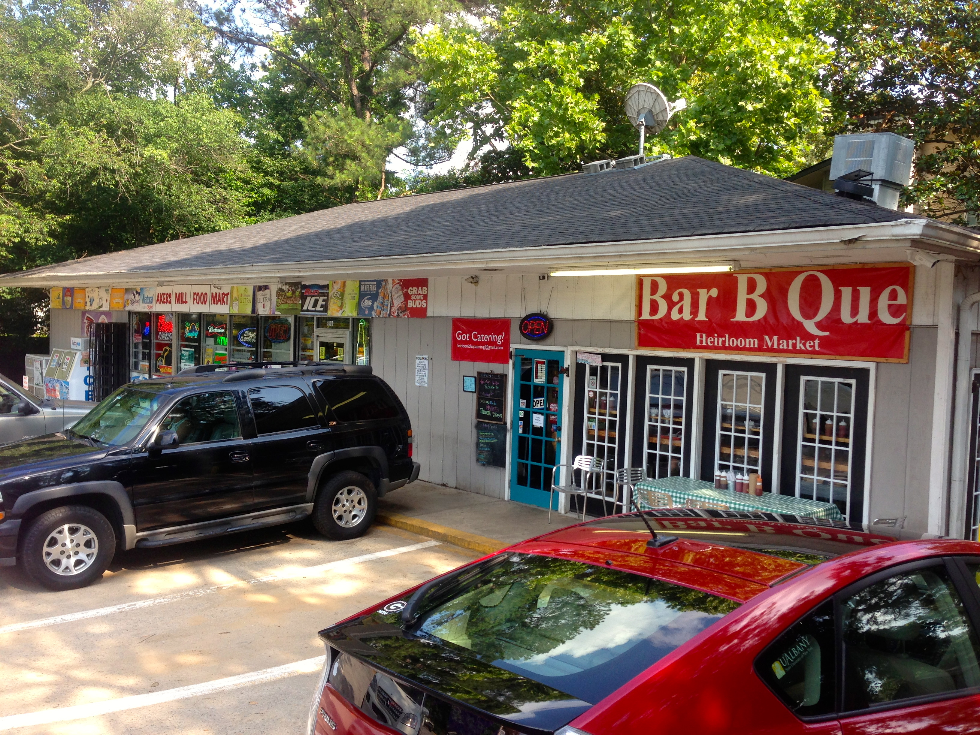 Heirloom Market looks like a convenience store because it’s attached to a convenience store. Don’t let the looks fool you, because inside is some of the best BBQ in Atlanta. The parking lot is hard to get in and out of and it’s hard to find a space. You wonder what they were thinking when they picked this spot and we figured that they would have moved by now. Instead, they built an out building in the back to house their BBQ cookers. Looks like they are going to be here for awhile. The new building doesn’t give them any more room in the dining room, though.