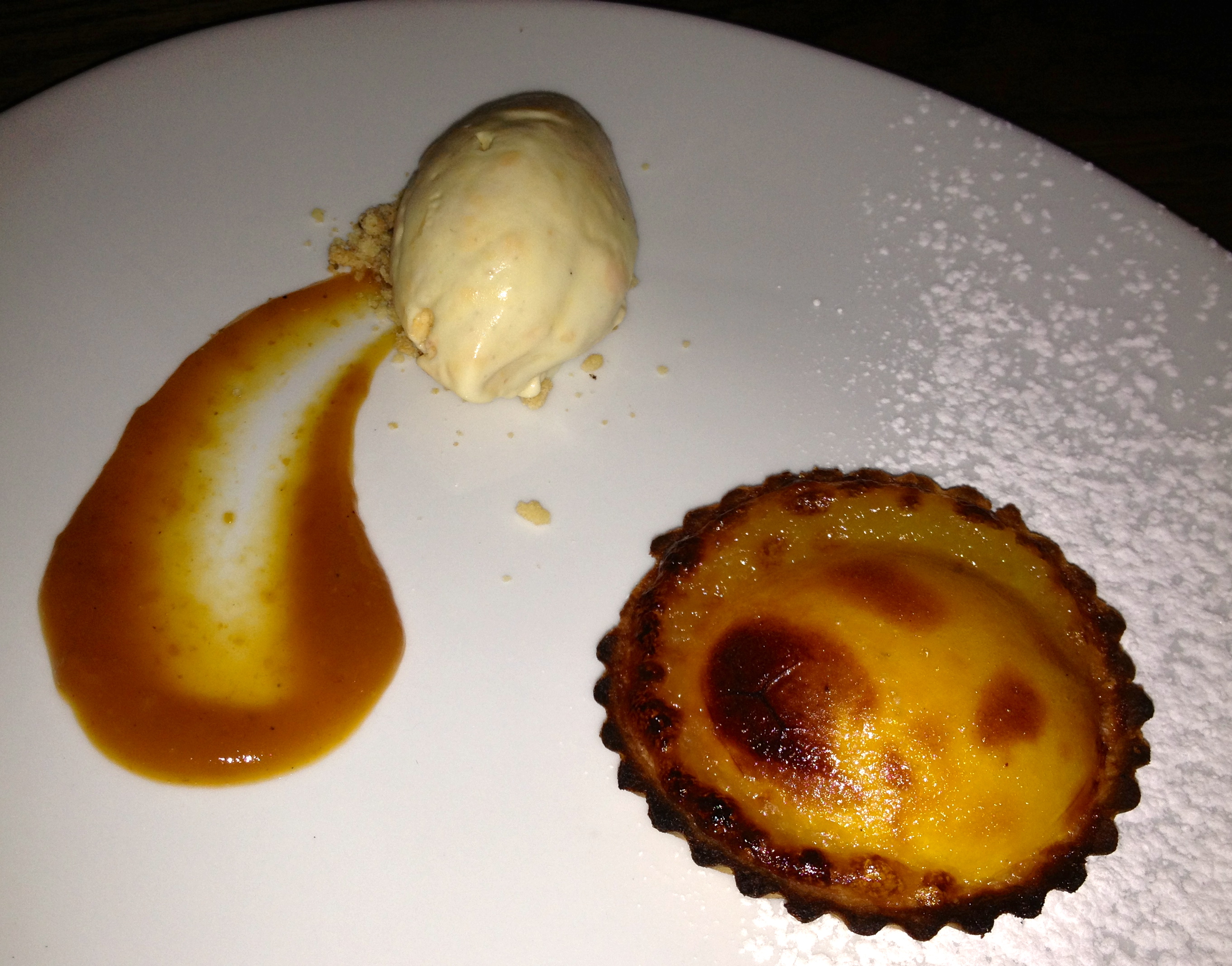 We get two desserts for the table. The first is an almond frangipani with blueberry compote, key lime curd, brandy snap and creme cheese. The Baker does a great job on this one.