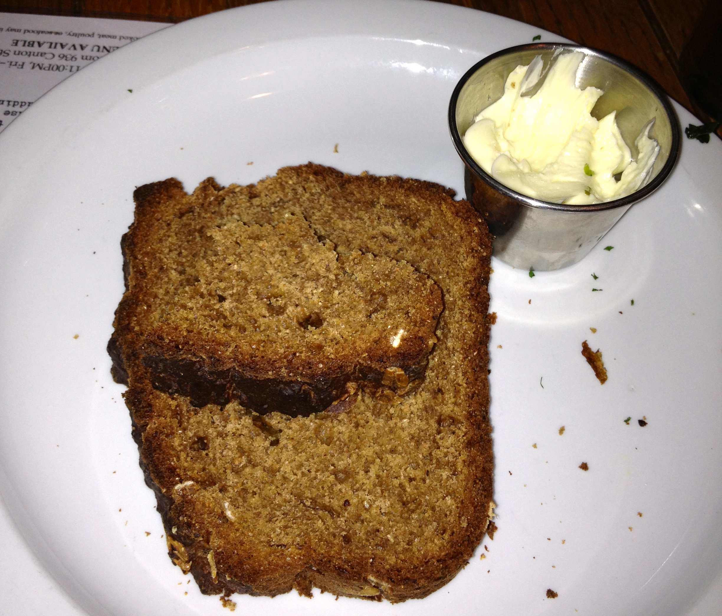 I also order some Guinness beer bread as I am a sucker for Irish soda bread. Unfortunately, this bread is dried out and not very good. Further inspection shows that they burned the top, which is probably why it is so dry. After everything that has gone wrong tonight, I don’t have the energy to complain.