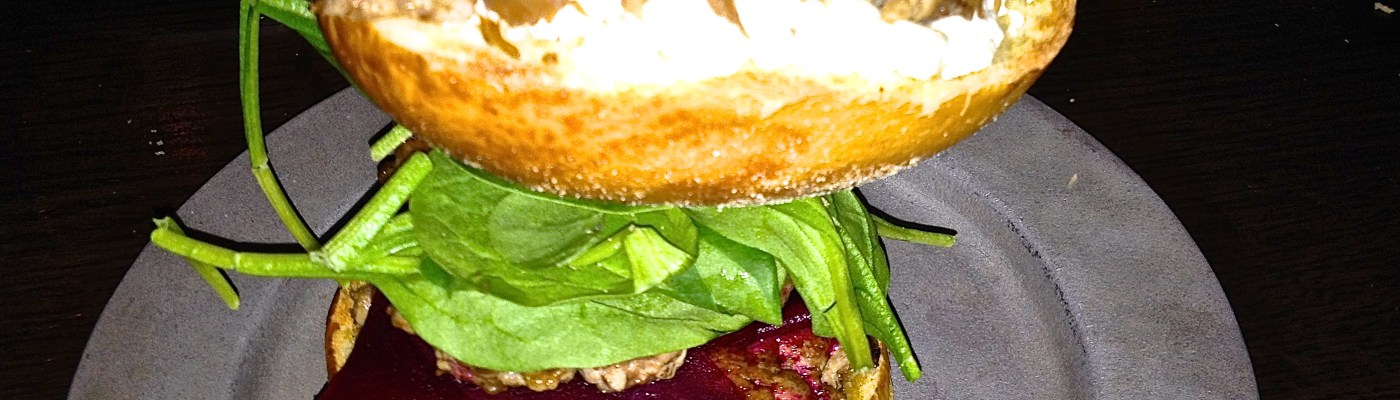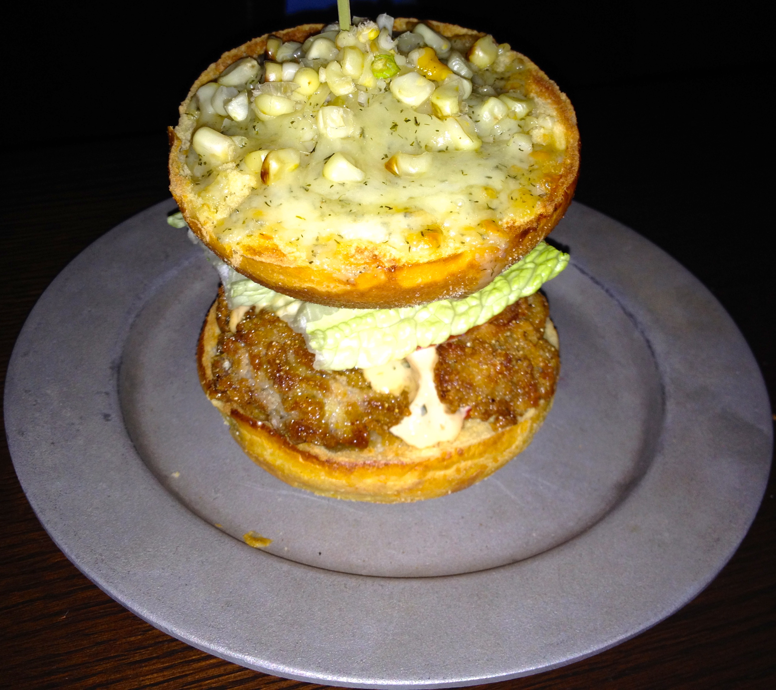The top of the bun comes “upside down” at Stillhouse to better showcase the toppings. You remove a long toothpick, invert the bun, and viola, you are ready to eat. As for the oyster burger, it has just oysters on it, no meat, so we aren’t sure that you can call it a burger. Elliott reports that the burger is very good, but it could have used a couple of more oysters on it as it was more bun than “burger”.