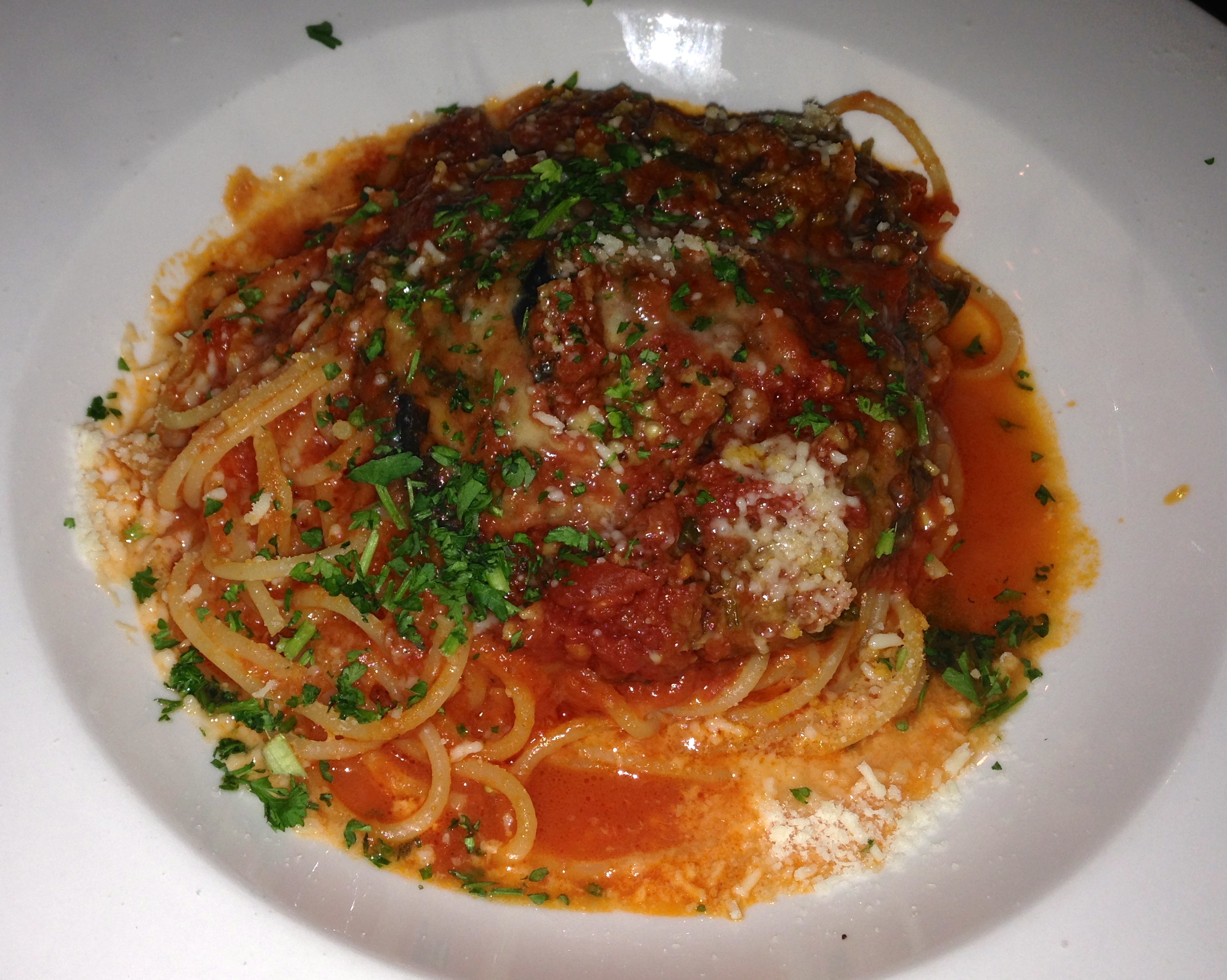 When we get home, I call up the menu online and the mystery is solved. We were served the Spaghetti Norma, which is “marinara, salted ricotta, eggplant, tomatoes and basil”. At least we got something that had eggplant in it. Perhaps we should have asked in the restaurant before we ate the whole thing, and we do not remember anyone asking how the food was. Shame on the restaurant for serving us the wrong menu item.