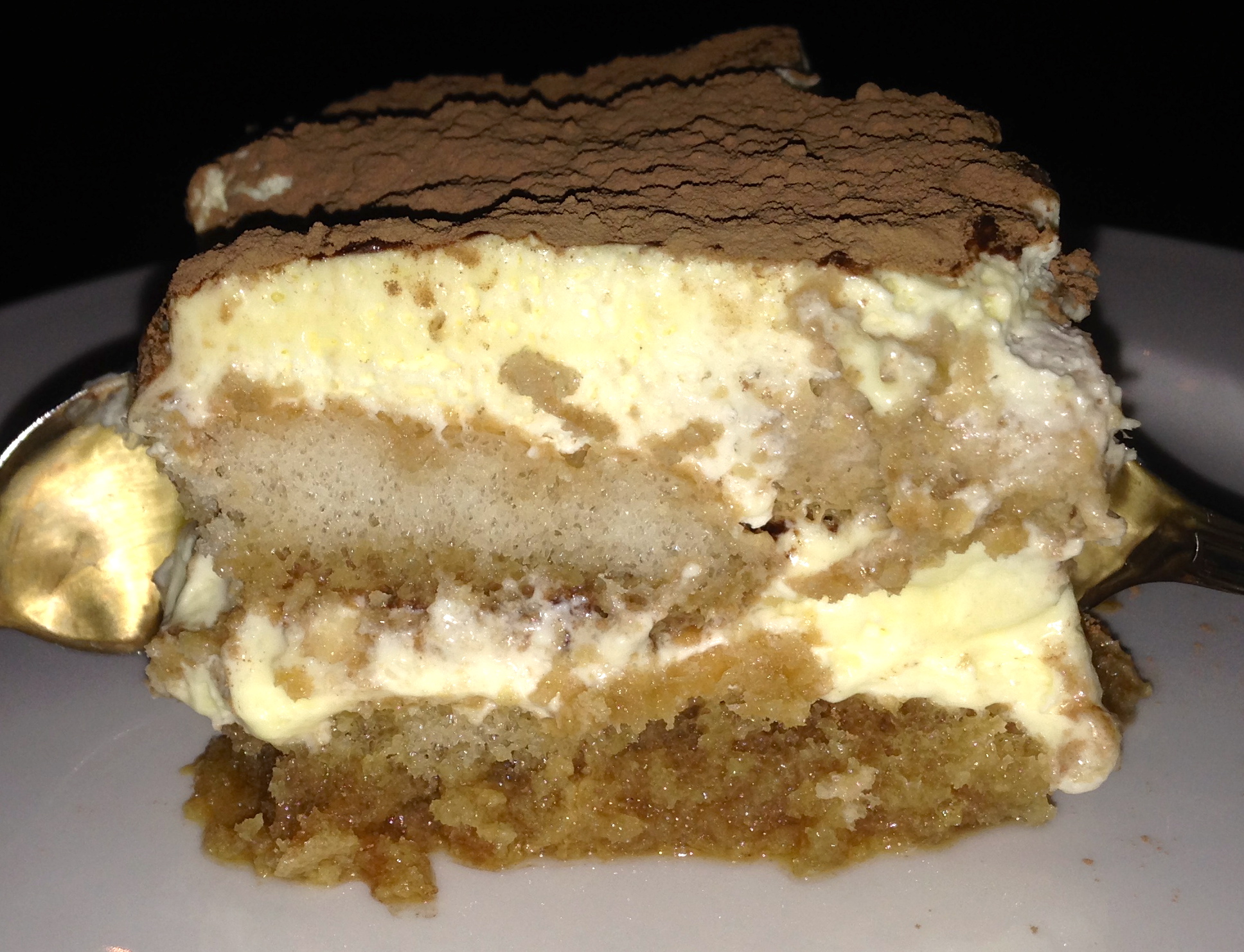Tiramisu is always a good way to end a heavy meal. It’s light and has a nice coffee flavor. The cake is soaked in rum, which gives us a nice finish.