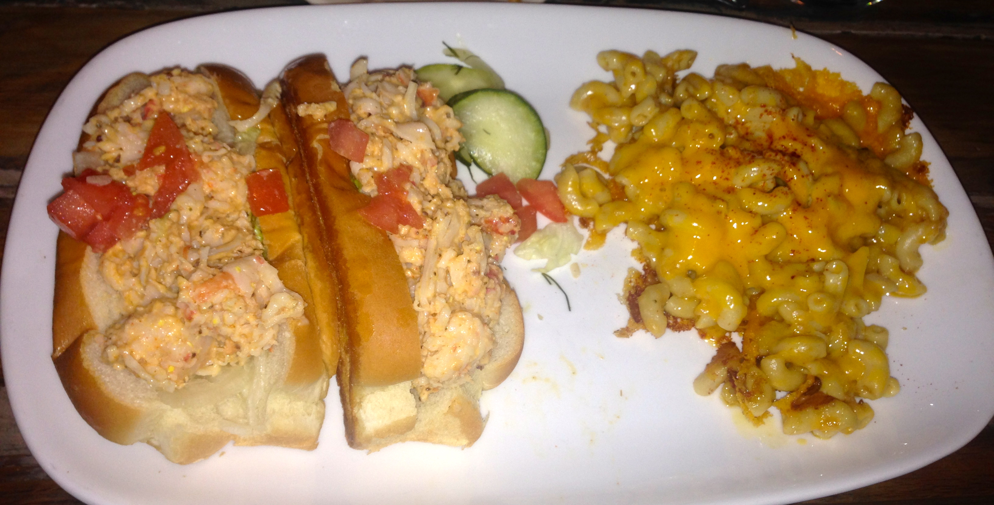 And we roll right into the lobster rolls. They are filled with a nice portion of cold, slightly-spicy lobster meat and served on buttery bread. The mac and cheese side is full of cheese and compliments our next sandwich.
