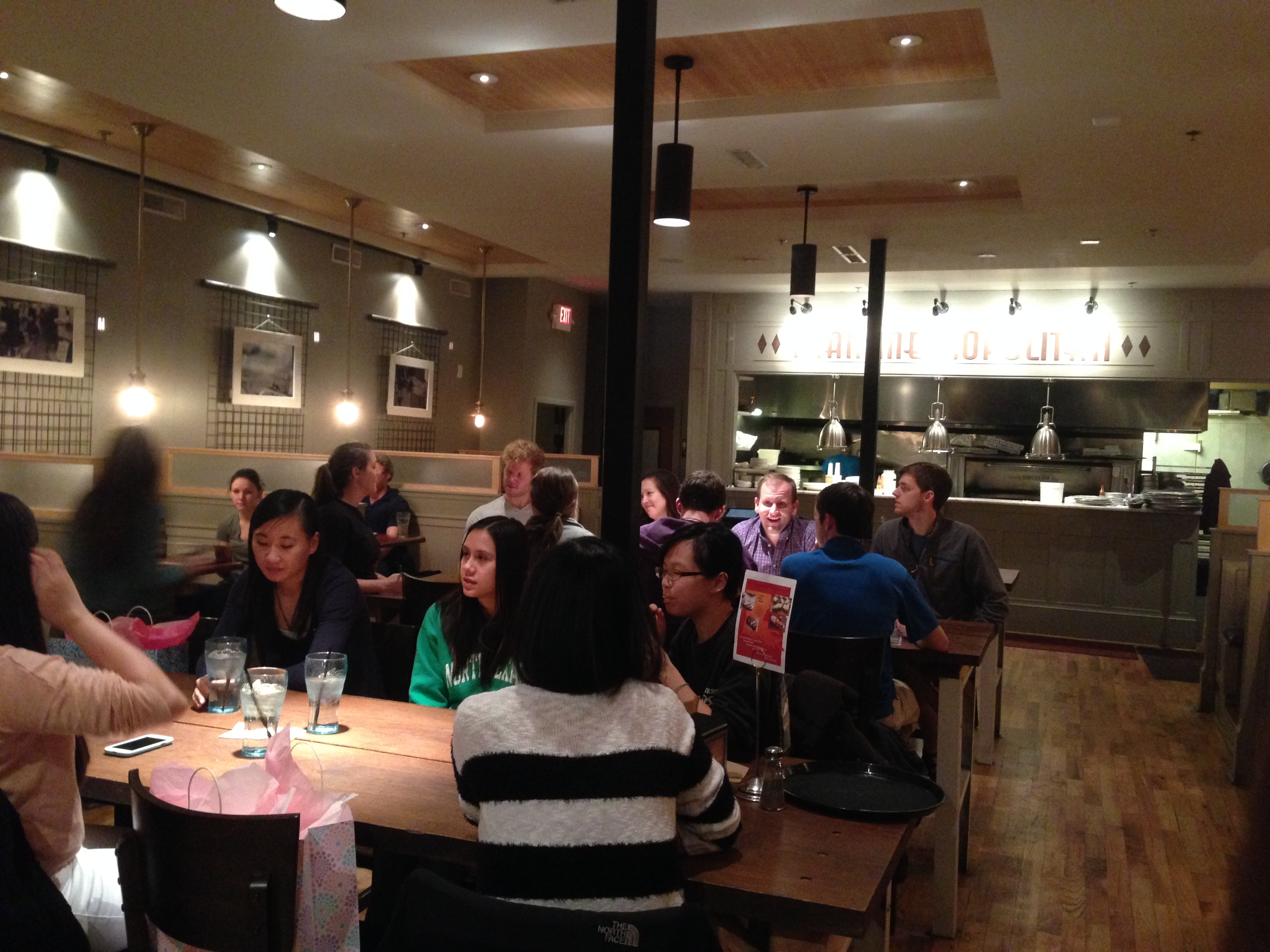 This is one of those places where college kids take their parents when they come to visit because the students can’t afford it. We are with a party of 7, celebrating our son’s 22nd birthday. We didn’t eat all of this food ourselves. I should have taken more pictures as the food is beautiful here.
