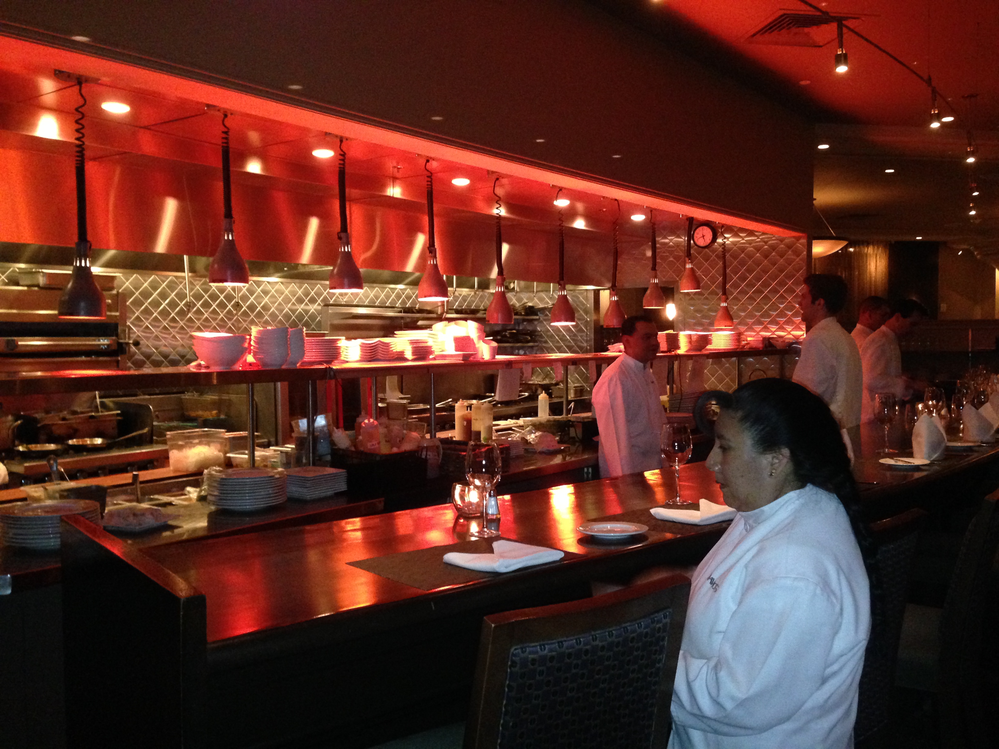 There is a large, open kitchen towards the back of the restaurant. If you sit inside you can get dinner and a show, but if it’s a nice night, you are going to want to go for the patio seating.