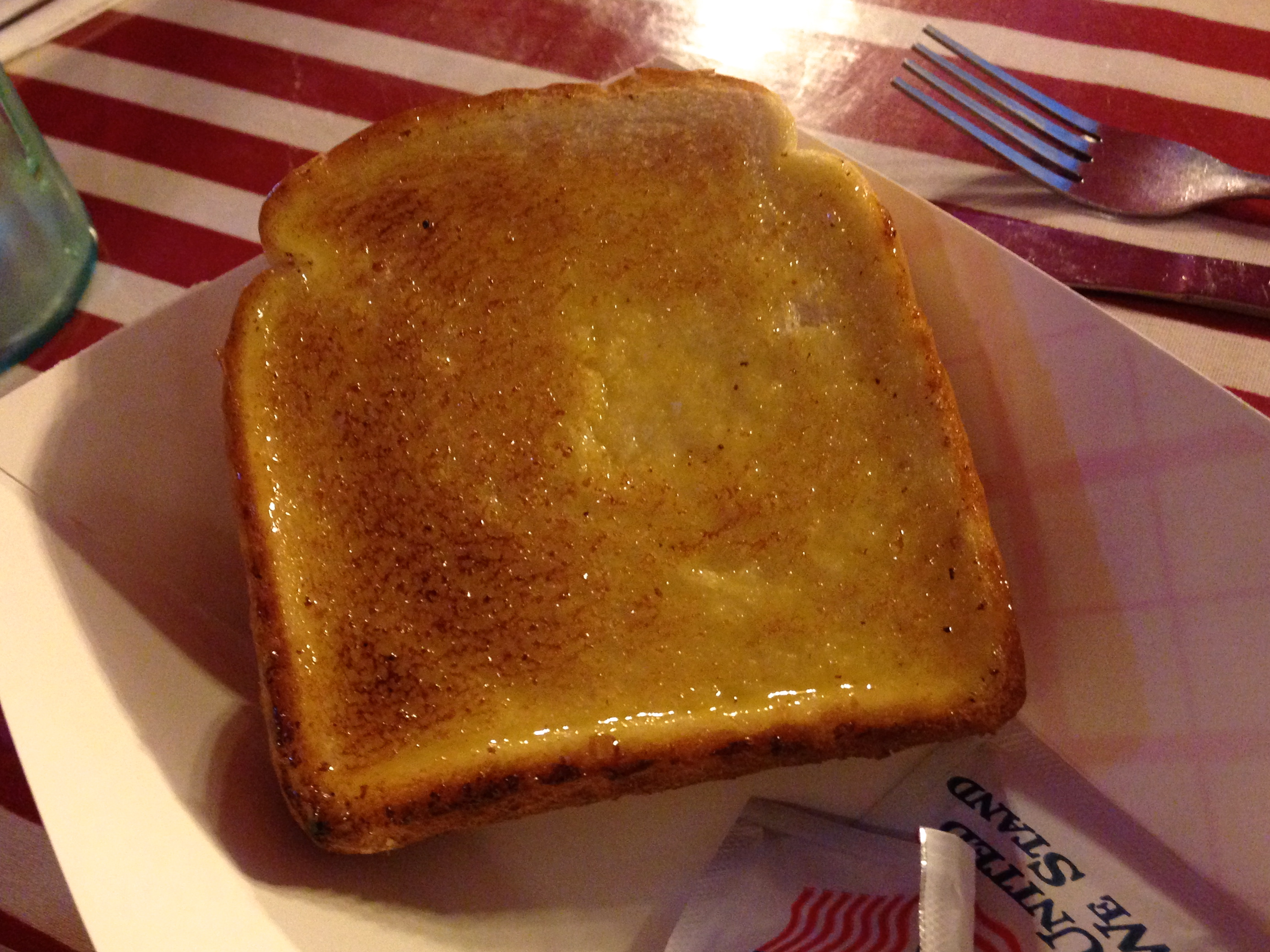 And now a shout-out to the Texas toast, which looks lonely in its own little basket. As you have seen, there is no room on the plate. Only in Texas could they come up with an appetizing name for a large hunk of white bread that’s slathered in butter and garlic. I did eat a couple of guilt-laden bites, though.
