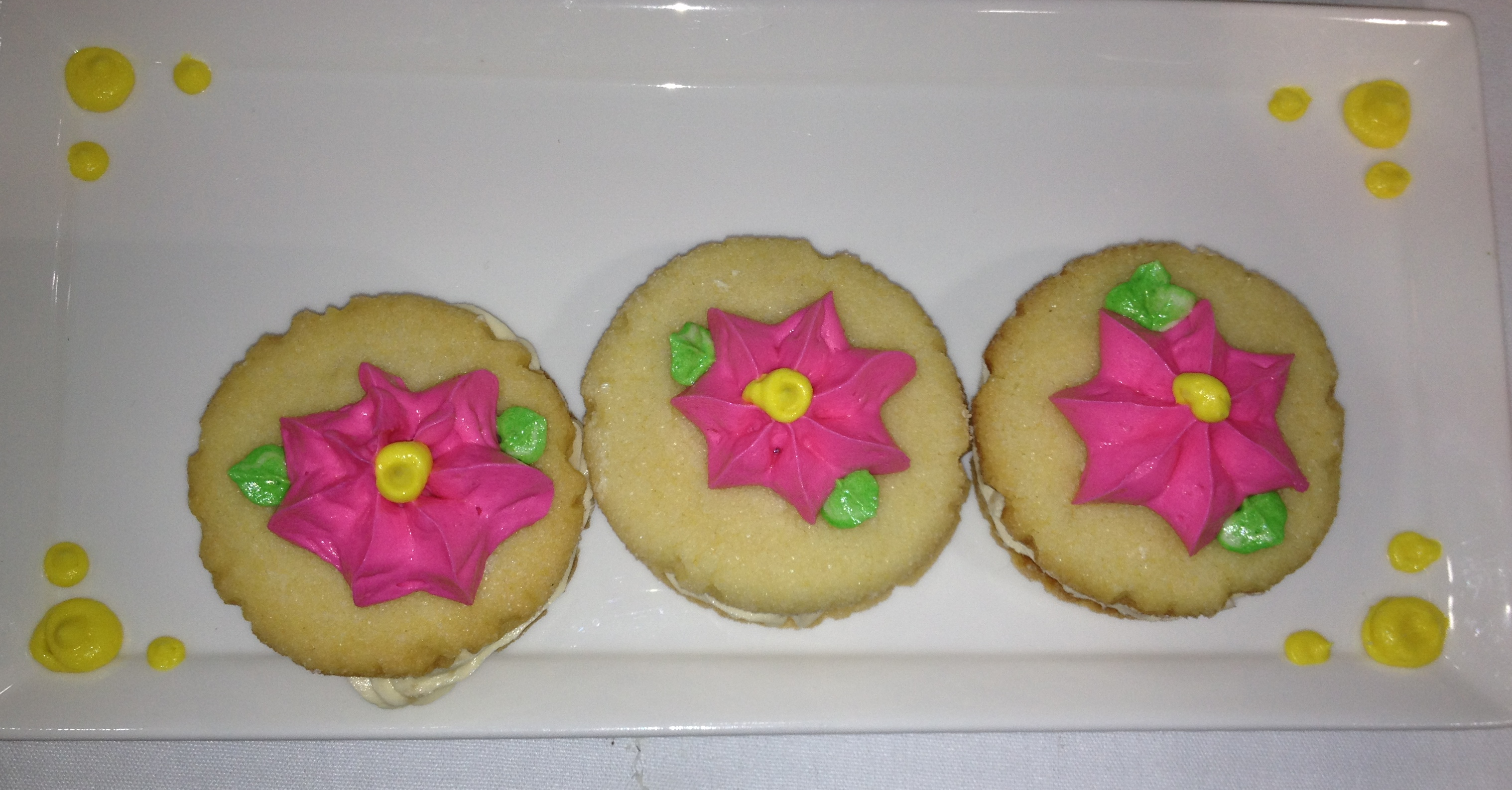 And finally whimsical sugar cookie sandwiches with buttercream filling.