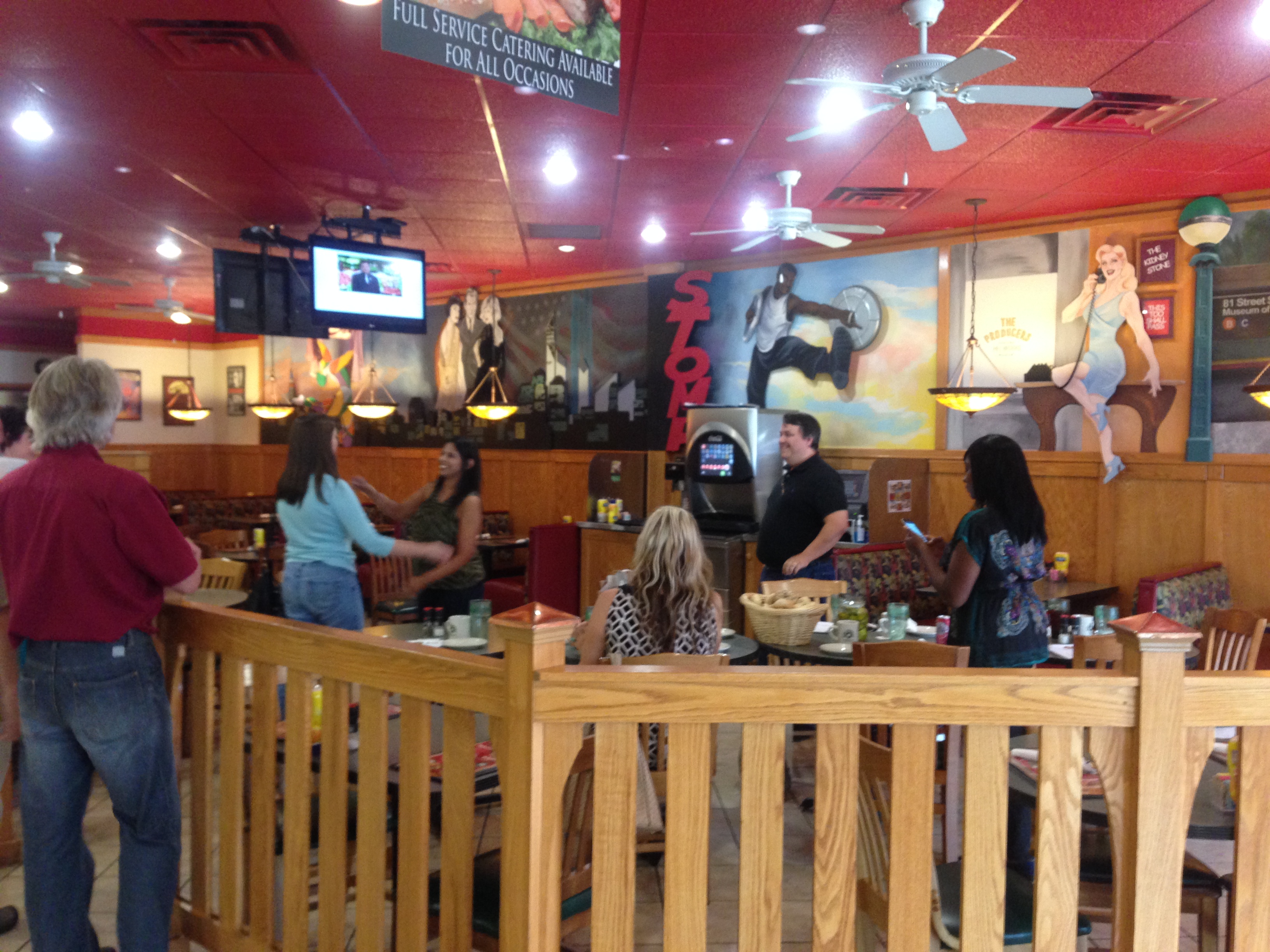 The decor pays homage to New York. Owner Howard Aaron, who is here tonight, says that the best delis are in New York, so why not try to replicate that in Atlanta. As you will see, he’s done a remarkable job. Later, he will take us to the kitchen where we will make bagels.