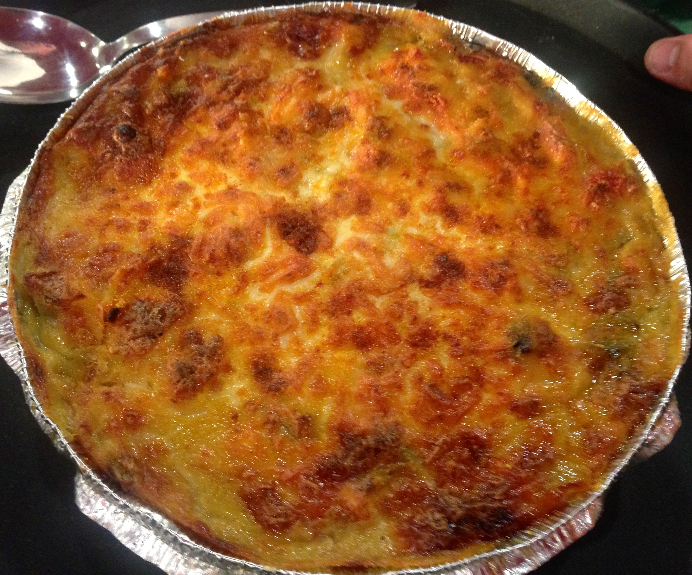 Need a quick, easy dinner? Goldberg’s has casseroles to go. This is the chicken tetrazzini. They are even nice enough to let us pick a casserole and take it home. We have their best-seller, the chicken pot pie, in the freezer for a future dinner.