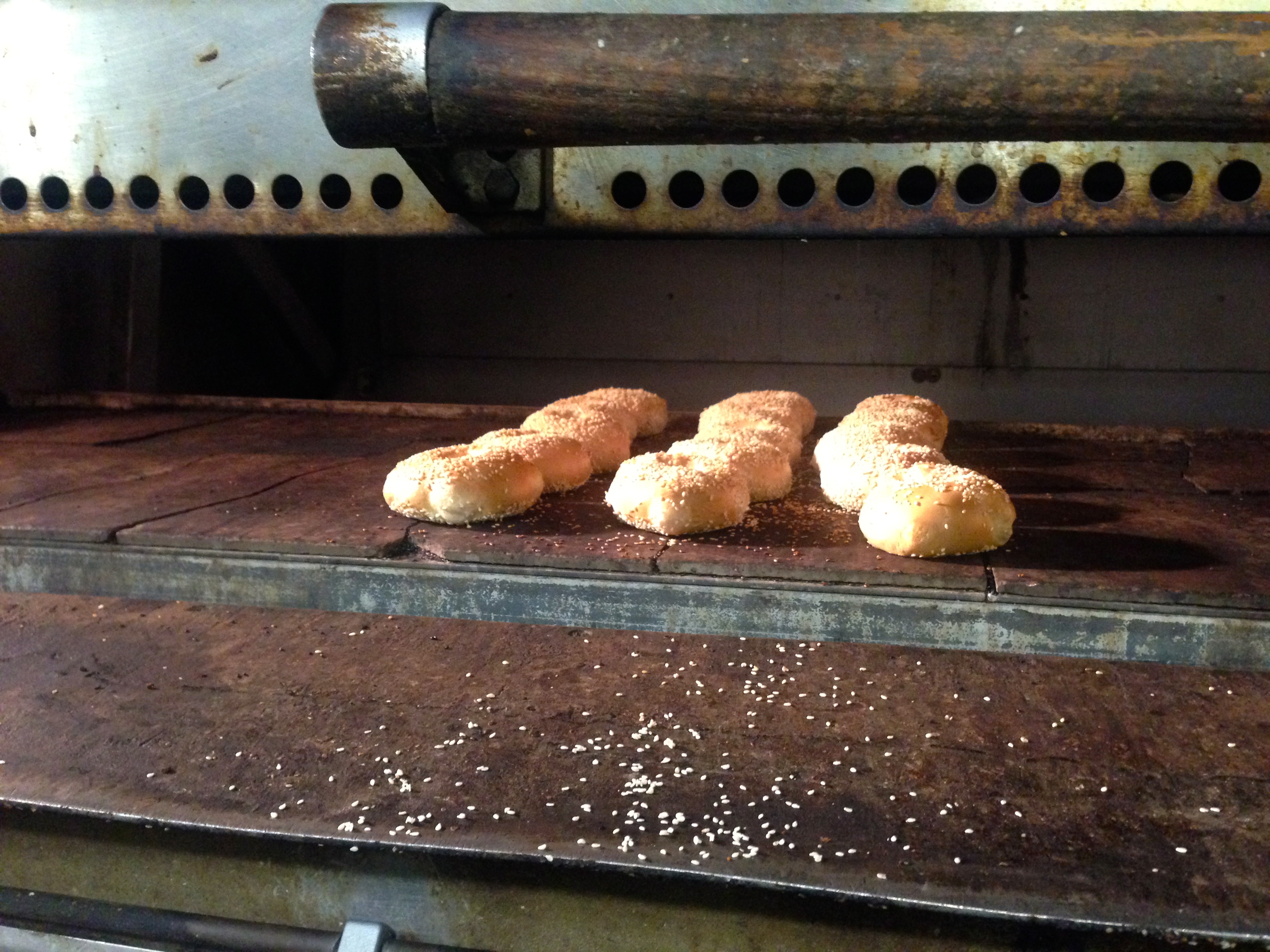 Roll them in the topping you want and put them in the oven. It’s really hot in this part of the restaurant, which is great in the winter, but we are all working up a sweat while we watch. About ten minutes later, viola!