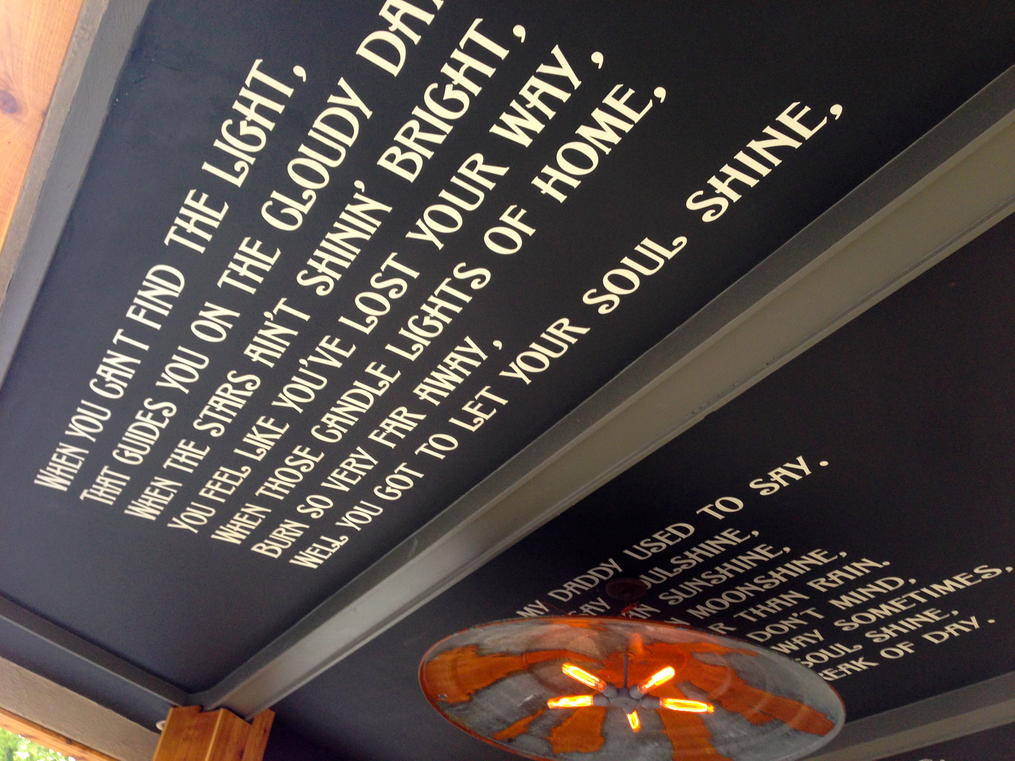 The decor is fun and whimsical. There are sayings on the ceilings here. Don’t strain your neck trying to read them.