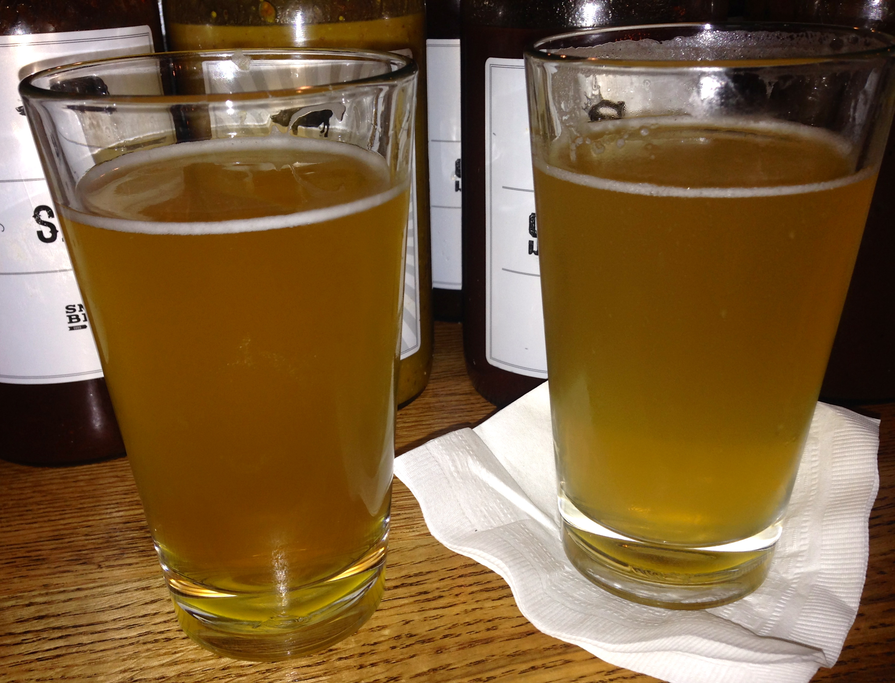 We order a couple of draft beers while we meet and greet people. I get the Allagash White and Eve goes for the Boulevard 80 Acre Wheat. Both beers look exactly the same. I may have switched them as I was carrying them back from the bar, but we both enjoy them, because beer is the natural complement to barbecue.