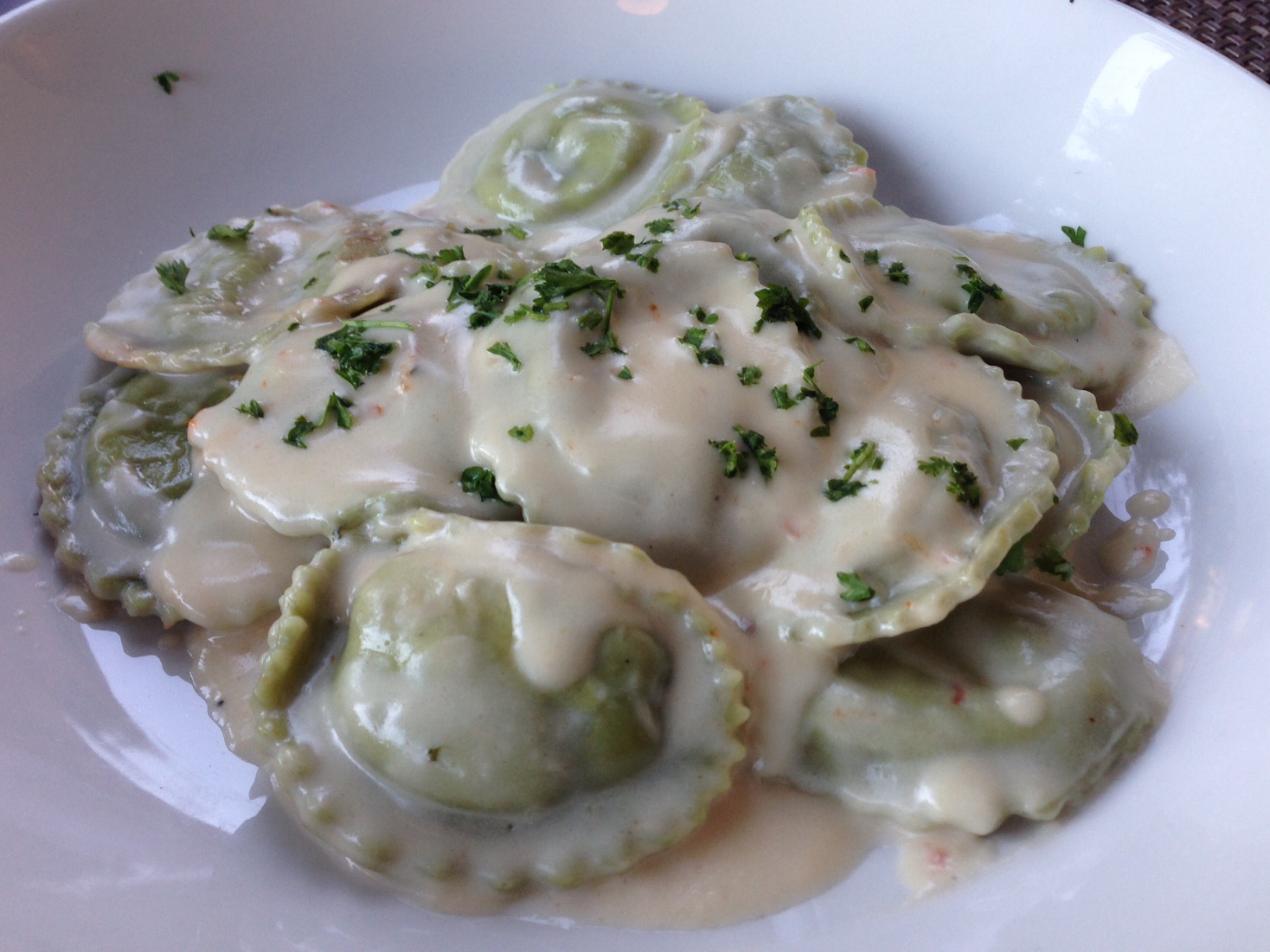 I’m not sure if it’s a coincidence, but tonight’s meal is totally vegetarian. Next up is the butternut squash cuore. That’s a heart-shaped pasta for those of you (like me) who didn’t know. I don’t usually go for cream sauce, but this lighter sauce worked well with the pasta. I really enjoyed this dish.