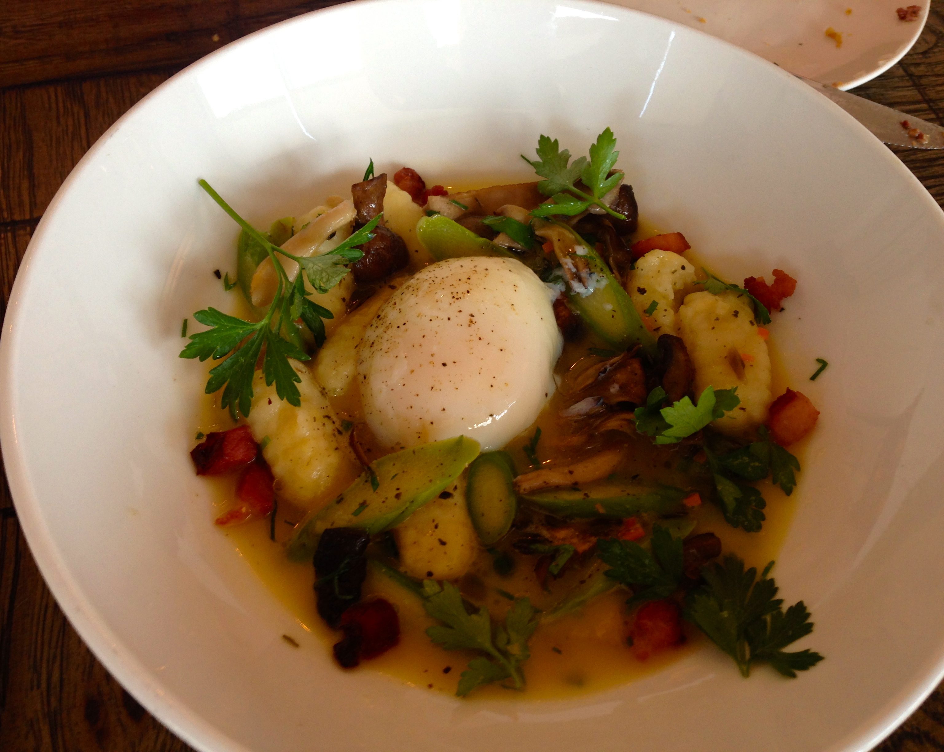 That soft cooked egg looks heavenly. Too bad you couldn’t “sop” it all up at the end of the dish.