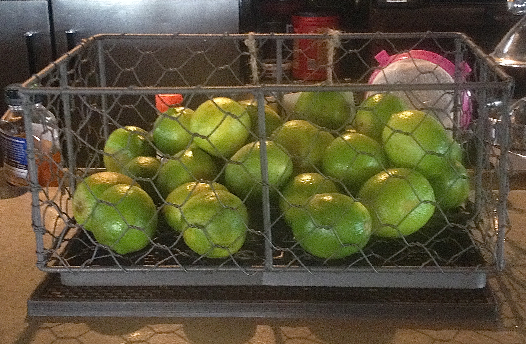 That’s a basket of fresh limes. Mags says that’s what makes the margaritas so good. Alas, we settle for a wedge in our waters.