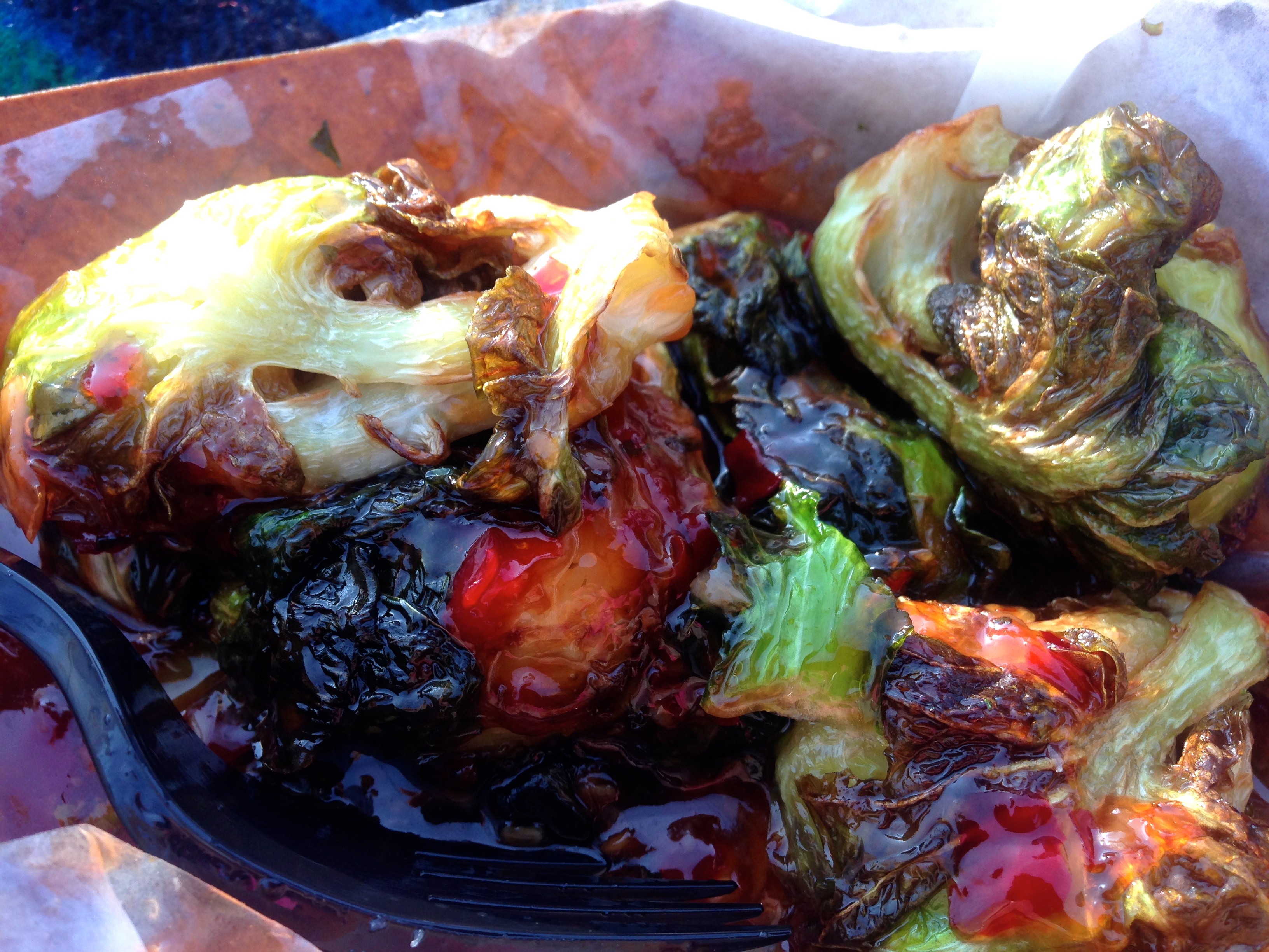 We’ve had Brussels Sprouts all over the city, and these are still the best. Nobody has yet to come close. The Thai-based sauce is sweet and just a little spicy. We love these things.