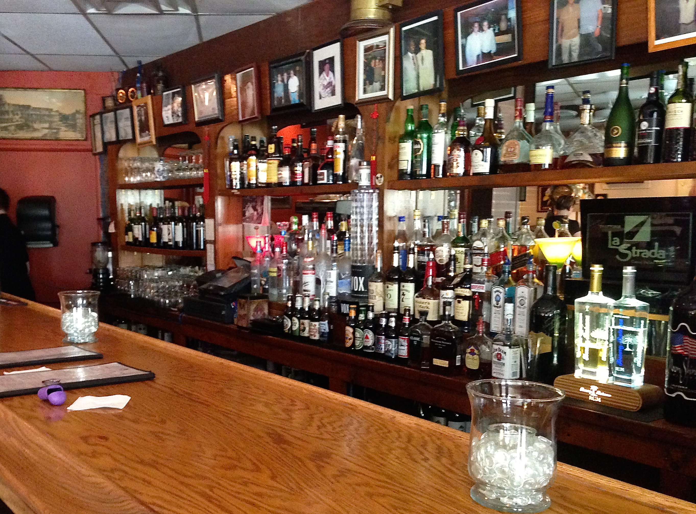 We are meeting our solo offspring for dinner, and while he sits in traffic, we sit at the bar and have a glass of wine. Like many Italian restaurants, the craft beer revolution has passed by here and the beer list is, shall we say, uninspiring. The Italian wines are plentiful and we have a glass of Chianti and a glass of Montelpulciano. Both are good reds that will go nicely with our meal ahead.