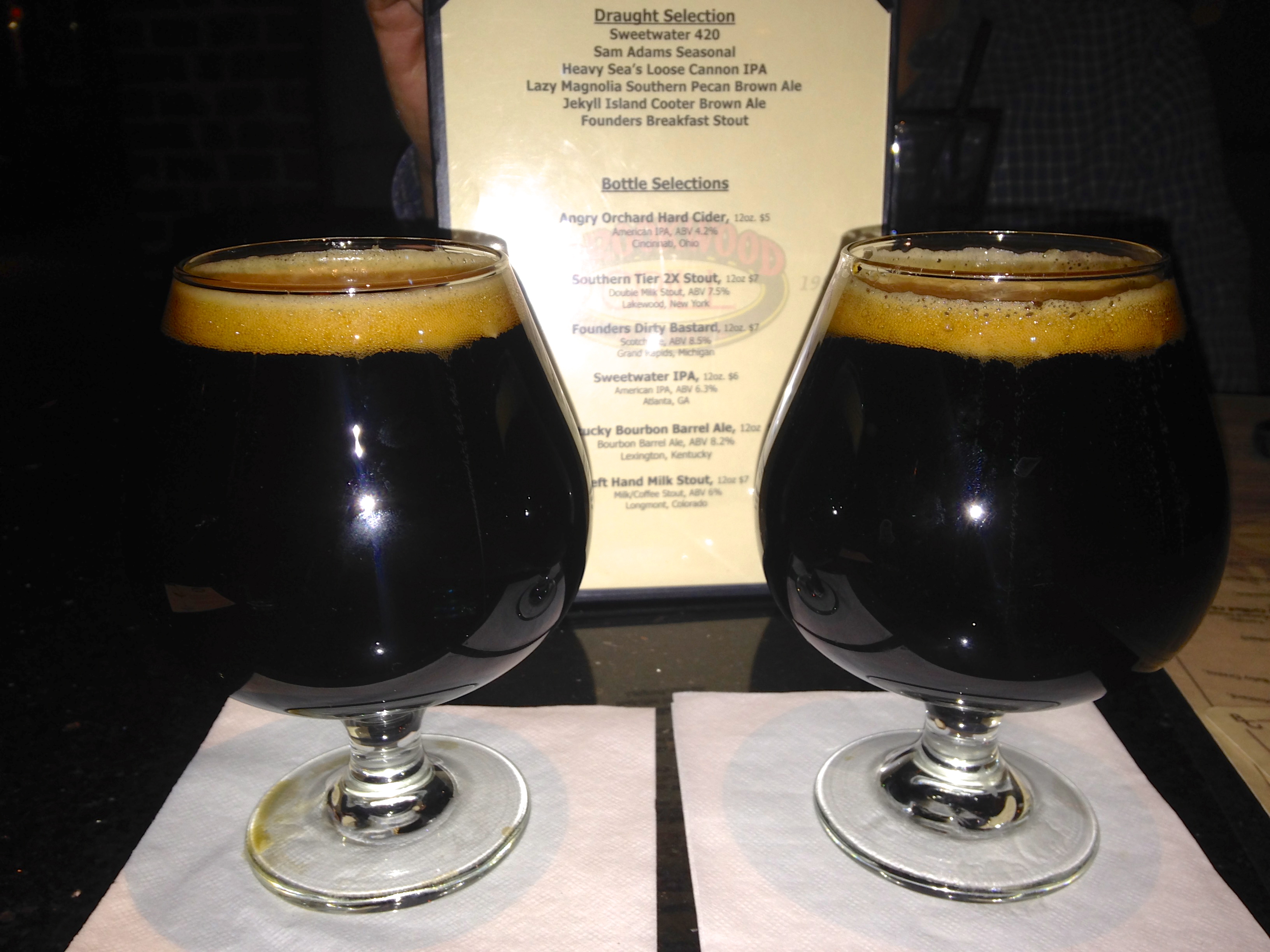 As always, Date Night likes to start out with beer. Tonight, we are both having the Founders Breakfast Stout. It’s thick and rich with a slight hint of coffee. This is a good beer for a cold night, perfect for tonight’s weather. One quibble: there are no prices on the draft beer portion of the menu, which means we have no idea what they charge for the beer until we get the check. If you guessed eight dollars, you would be correct.