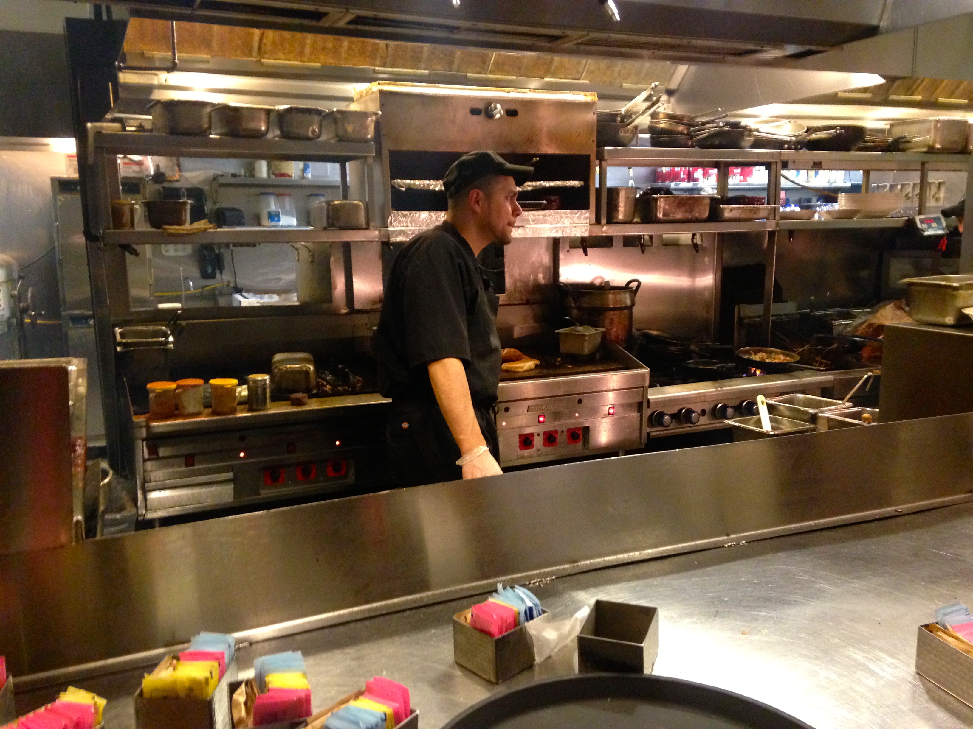 Every now and then you see spectacular flames jumping off of the grill as something is cooked. As we shall see later, there’s good food coming out of this area.