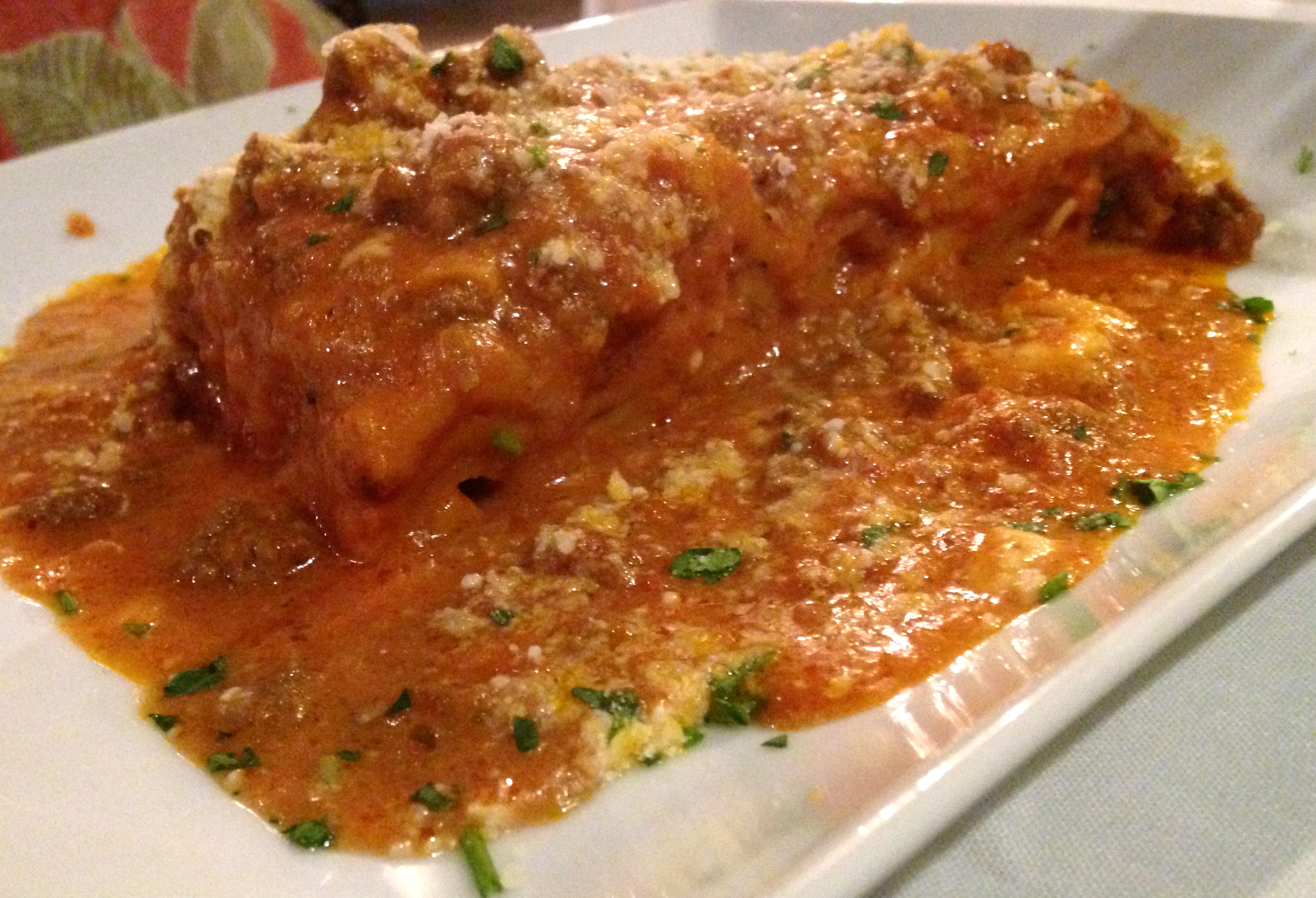 Here’s one of Chef Luigi’s specials for tonight, which Eve chooses. The crab meat and shrimp ravioli is worthy of being a special. Perfectly prepared prawns and pillows of fresh pasta are stuffed with crabmeat. Not only is this a wonderful dish, it gives this writer a good chance to use his alliteration skills.