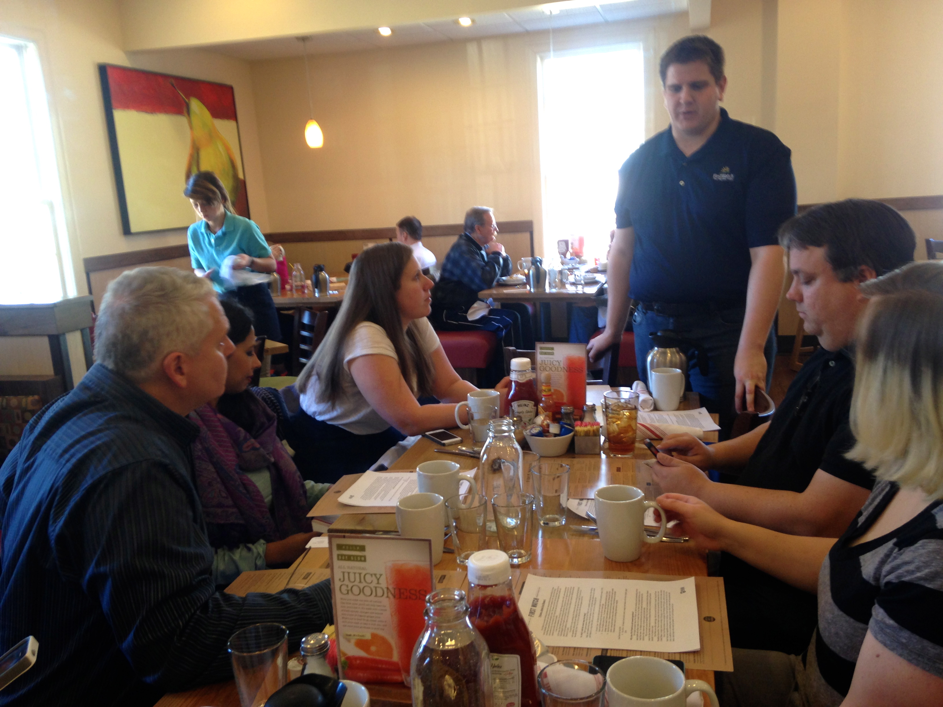 We are invited to an Association of Food Bloggers event organized by the wonderful Malika Bowling of the Atlanta Restaurant Blog. Also in attendance is the baron of bloggers, Grant Goggans of Marie Let’s Eat, Mary from Spatial Drift and Tiffani from Crush Crave. First Watch Regional Manager Charles Rohling is here as well to welcome us to their digs in Dunwoody.