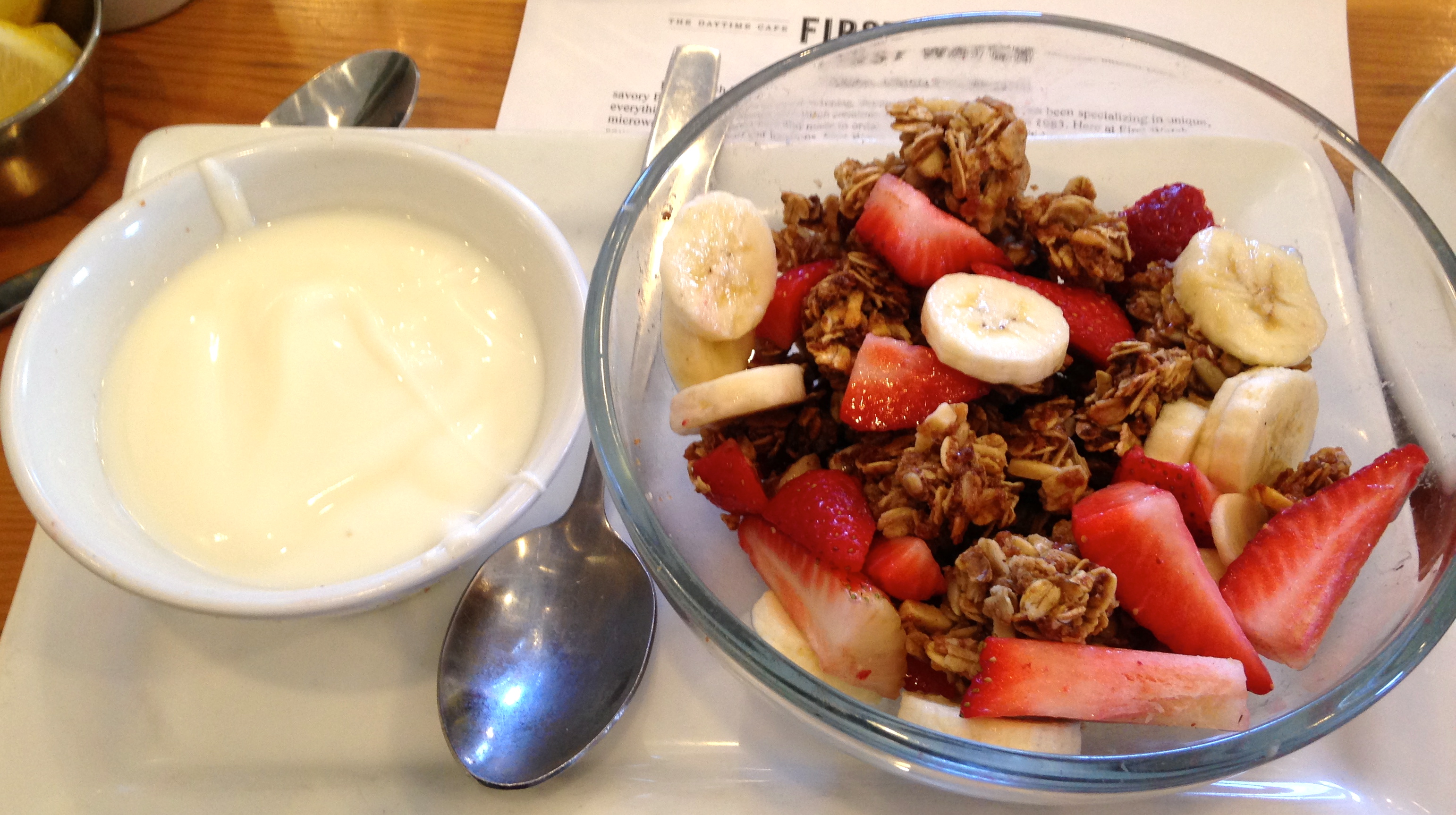 […] I liked it, but was sort of underwhelmed. I think because it was supposed to be “healthier” it lacked a little bit of flavor, and there really wasn’t that much filling. I was a bit jealous of my fellow diners who ordered much more colorful and interesting dishes like the Parma Hash, or the granola and pancake enjoyed by brunchmates at Friday Date Night. […]