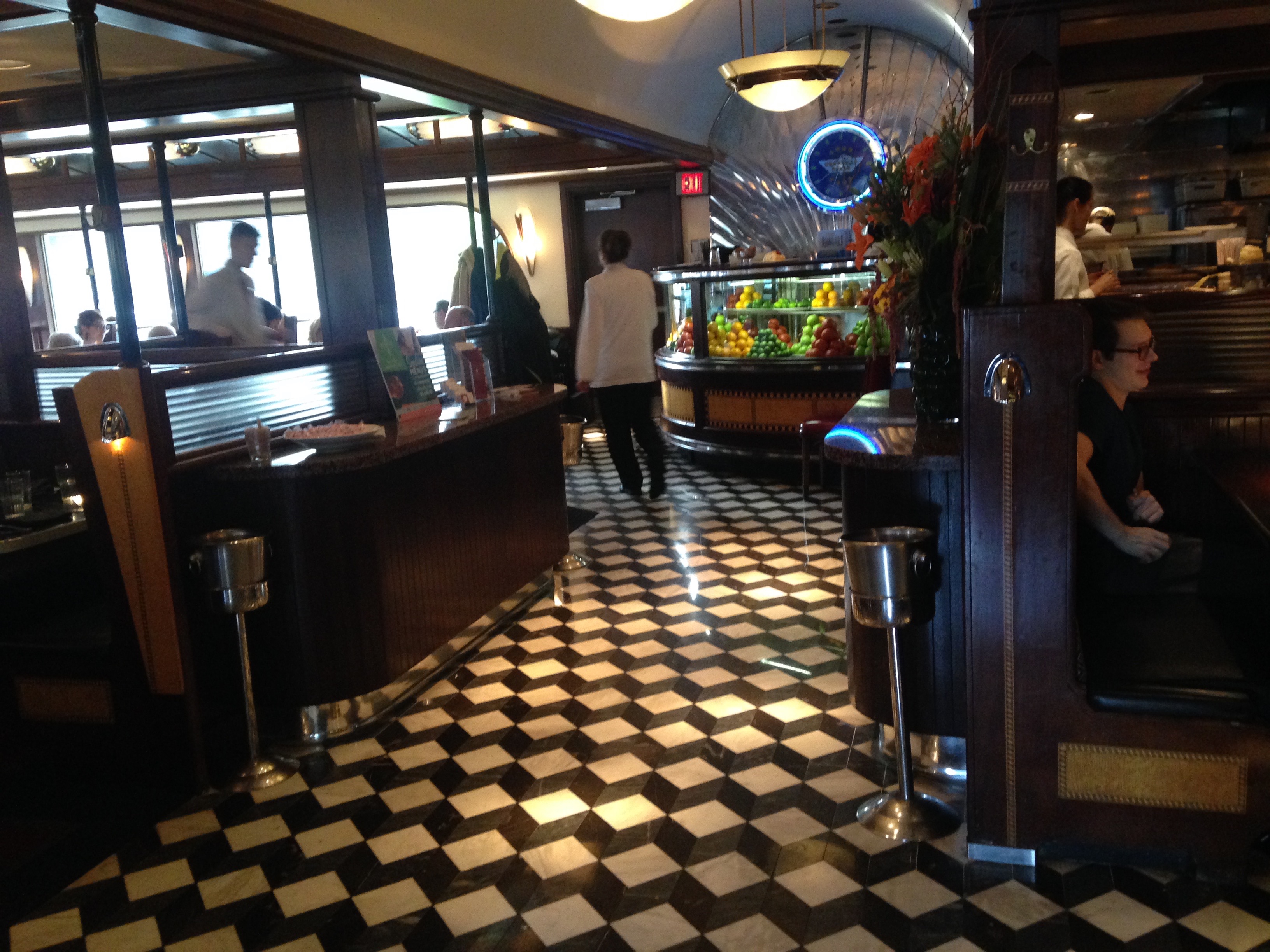 Every surface of the restaurant is curved in the proper art deco style. I wish we could decorate our home like this.