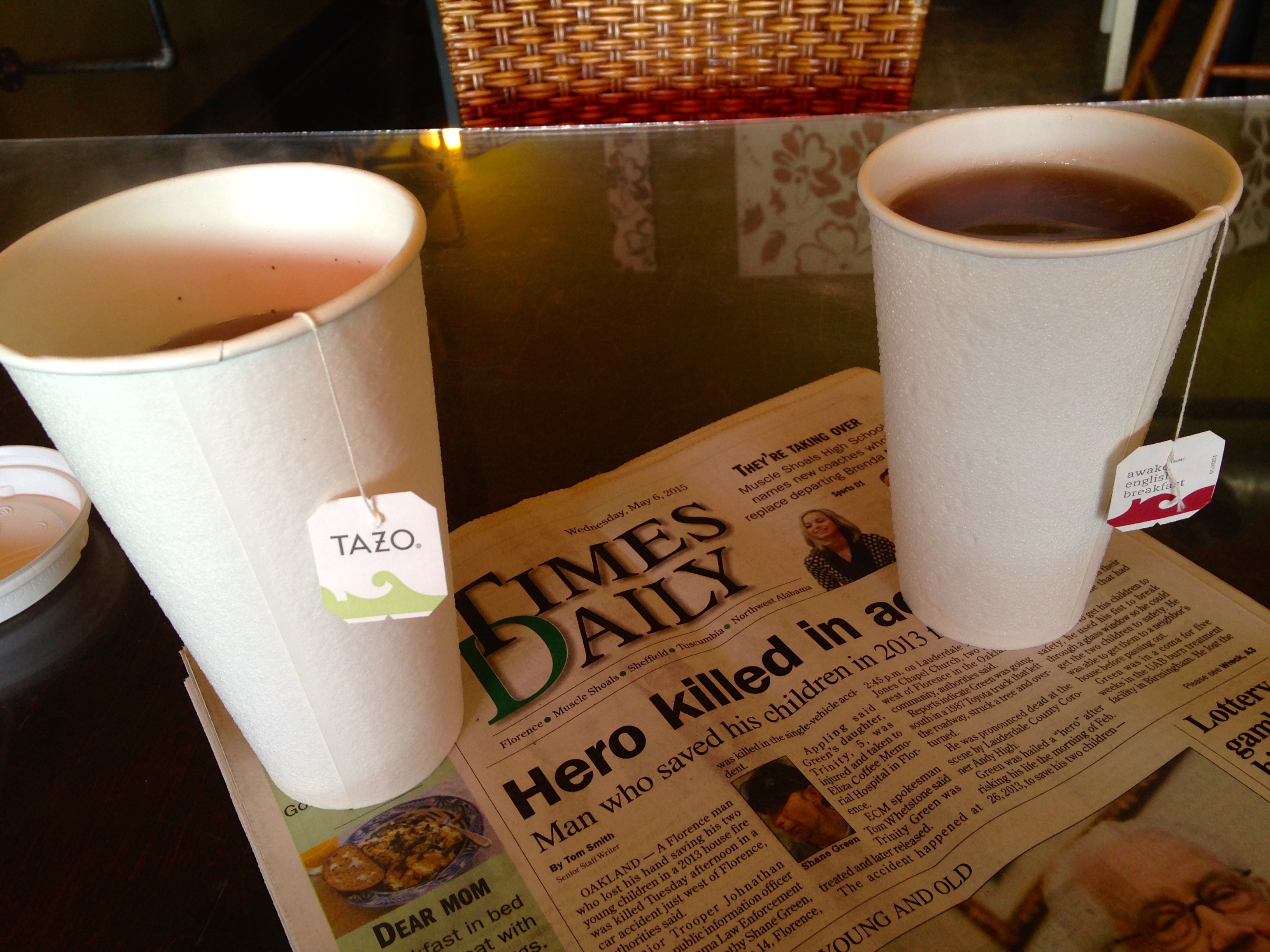 We are tea people and get a Zen and an Awake from Tazo. These should get us through the ride. Or at least make us have a bathroom break fifteen minutes into it!