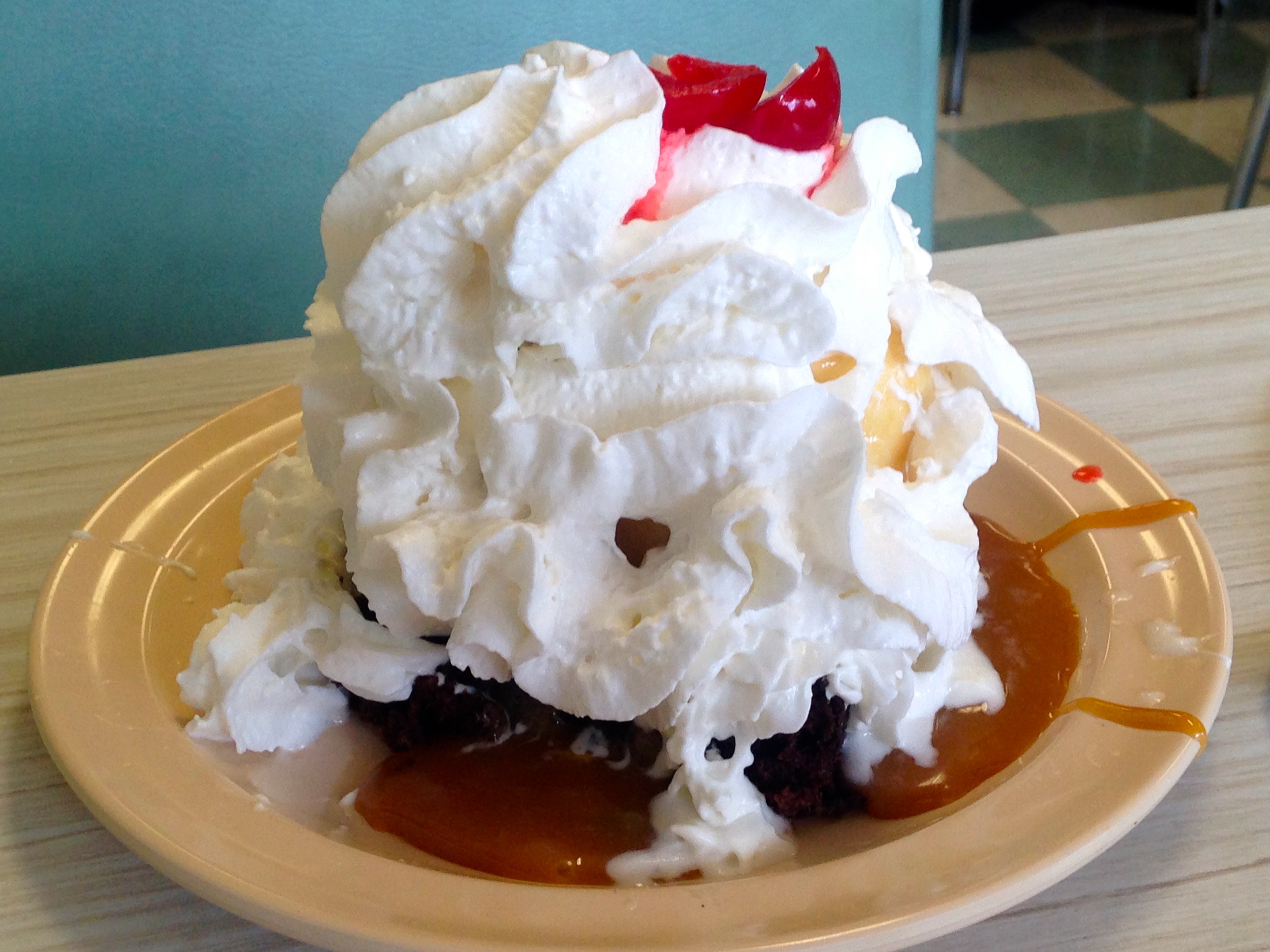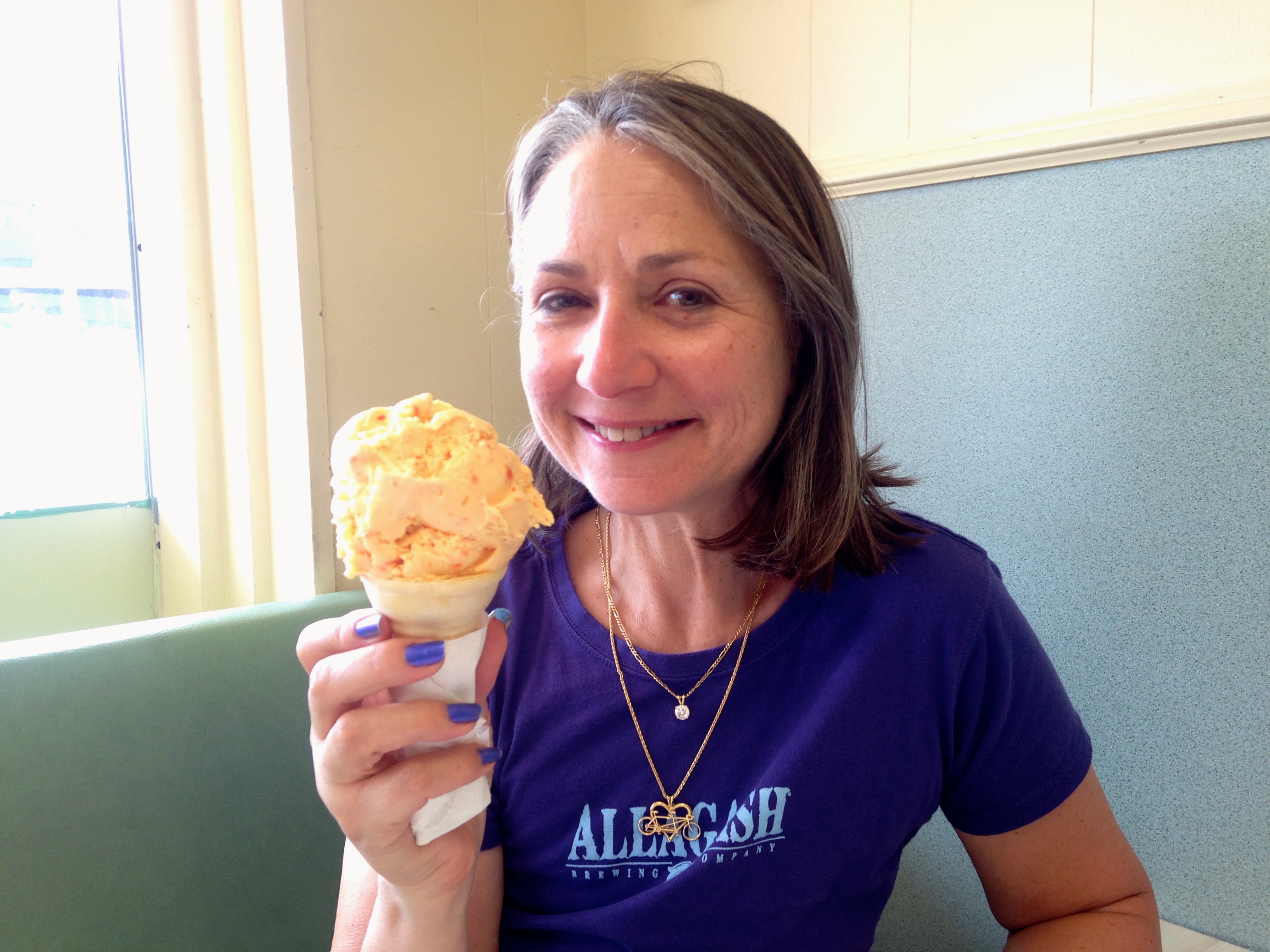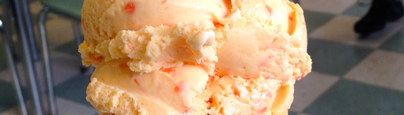Paul Trowbridge opened the creamery and developed the orange-pineapple flavor which is still being served today. The creamery is gone and the rights to the recipes were sold long ago. When I learn such a fact I feel like it’s my duty to eat and describe. First of all, the orange-pineapple is visually pleasing.