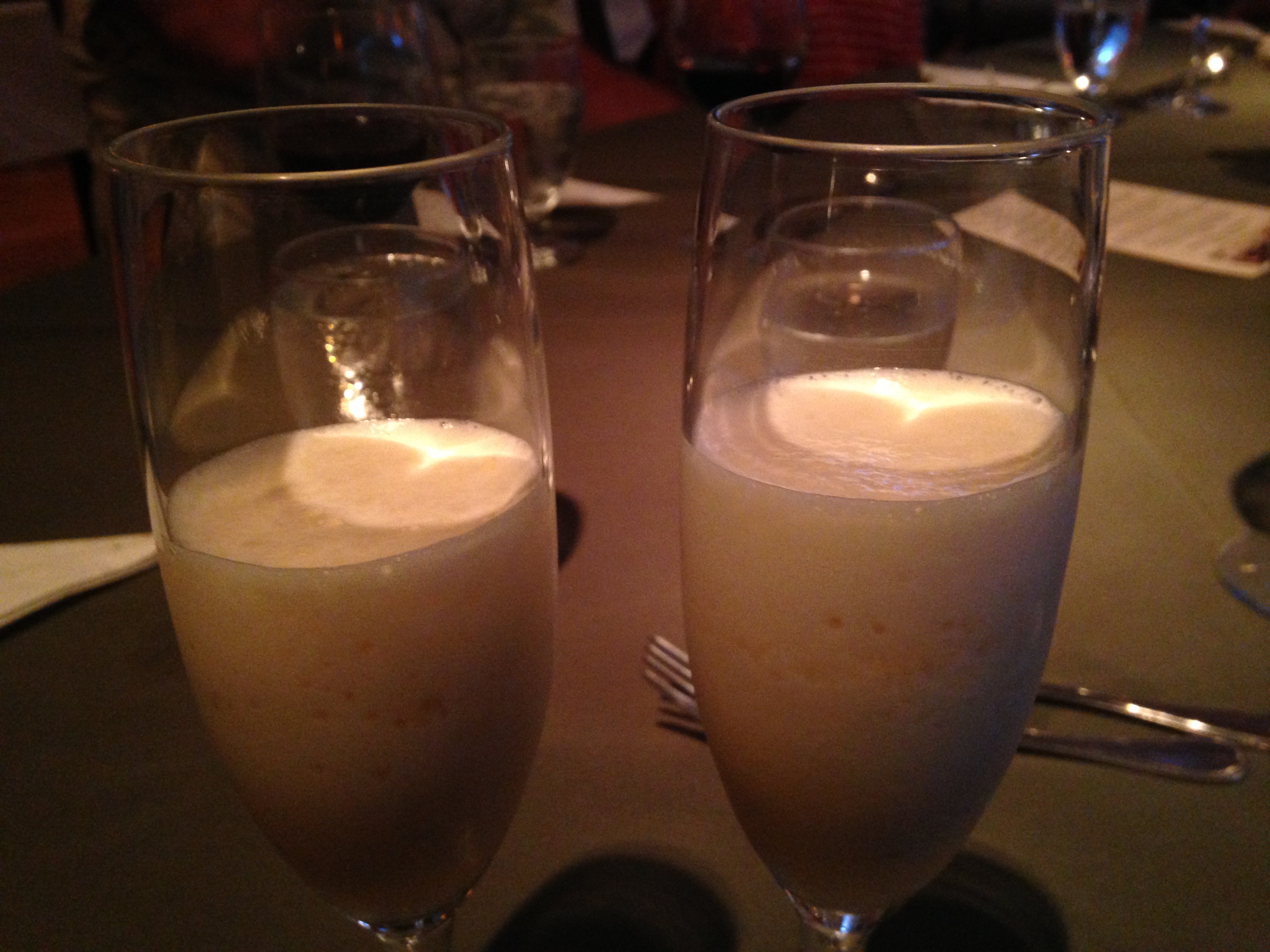 The mixed fruit sorbet comes in a glass. It cleanses our palates and we are ready for dessert.