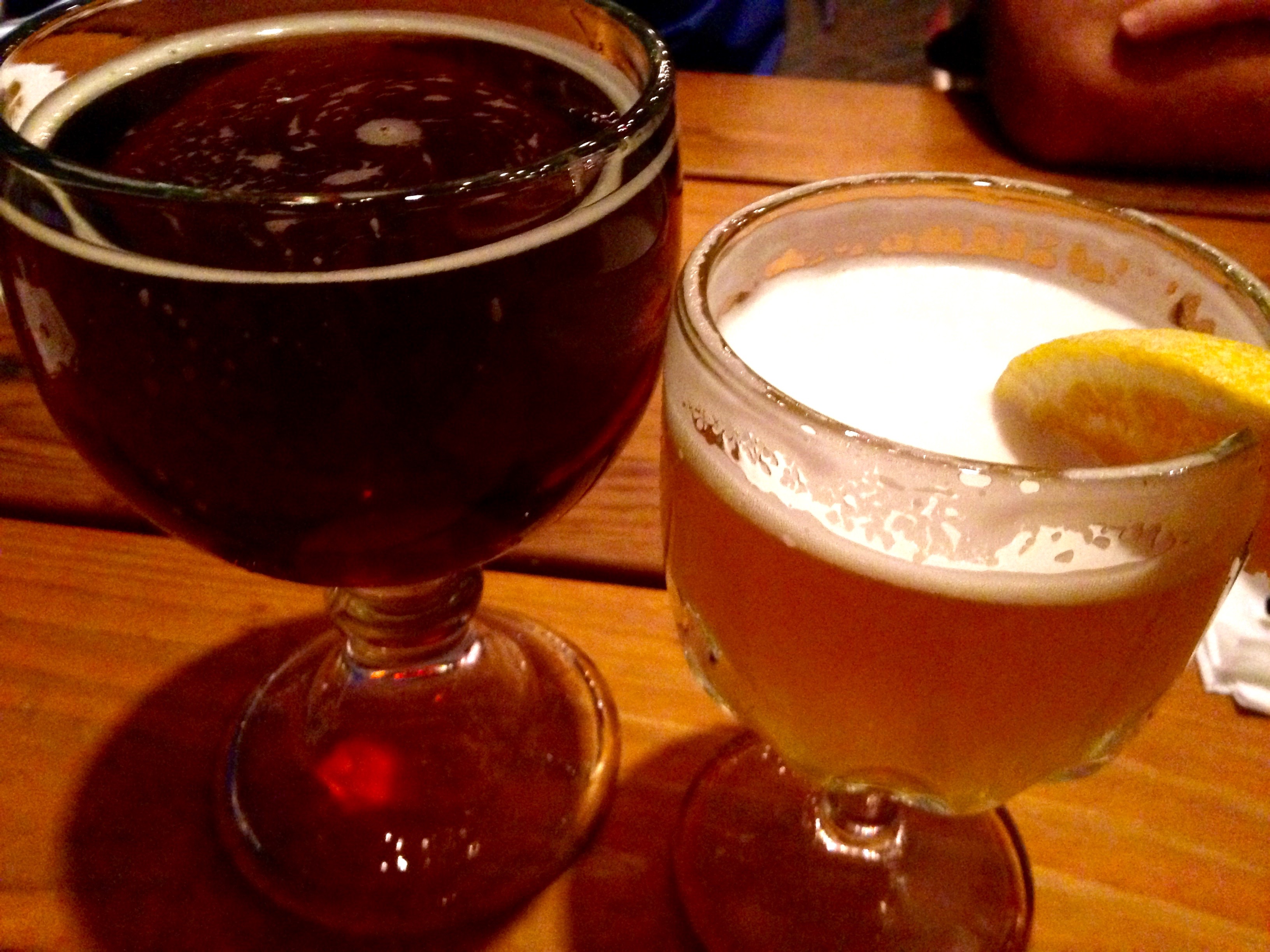 I have the Full Sail Amber and Eve orders the Harpoon UFO White. The neat thing they do here is that you can order your draft beers in small, medium or large. We spot a large glass at a nearby table and it’s the size of a small pitcher. We opt for the small and medium schooners.