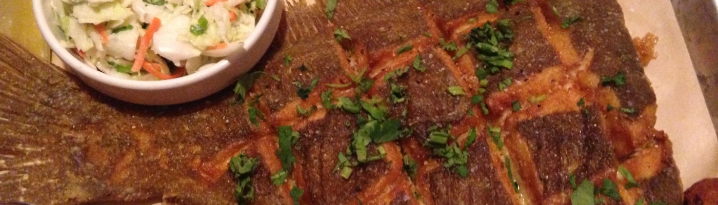 It’s visually pleasing, crunchy on the outside, and moist and tender on the inside. The portion is very large and a to-go box will accompany us home. It is served with hush puppies and a tasty coleslaw.