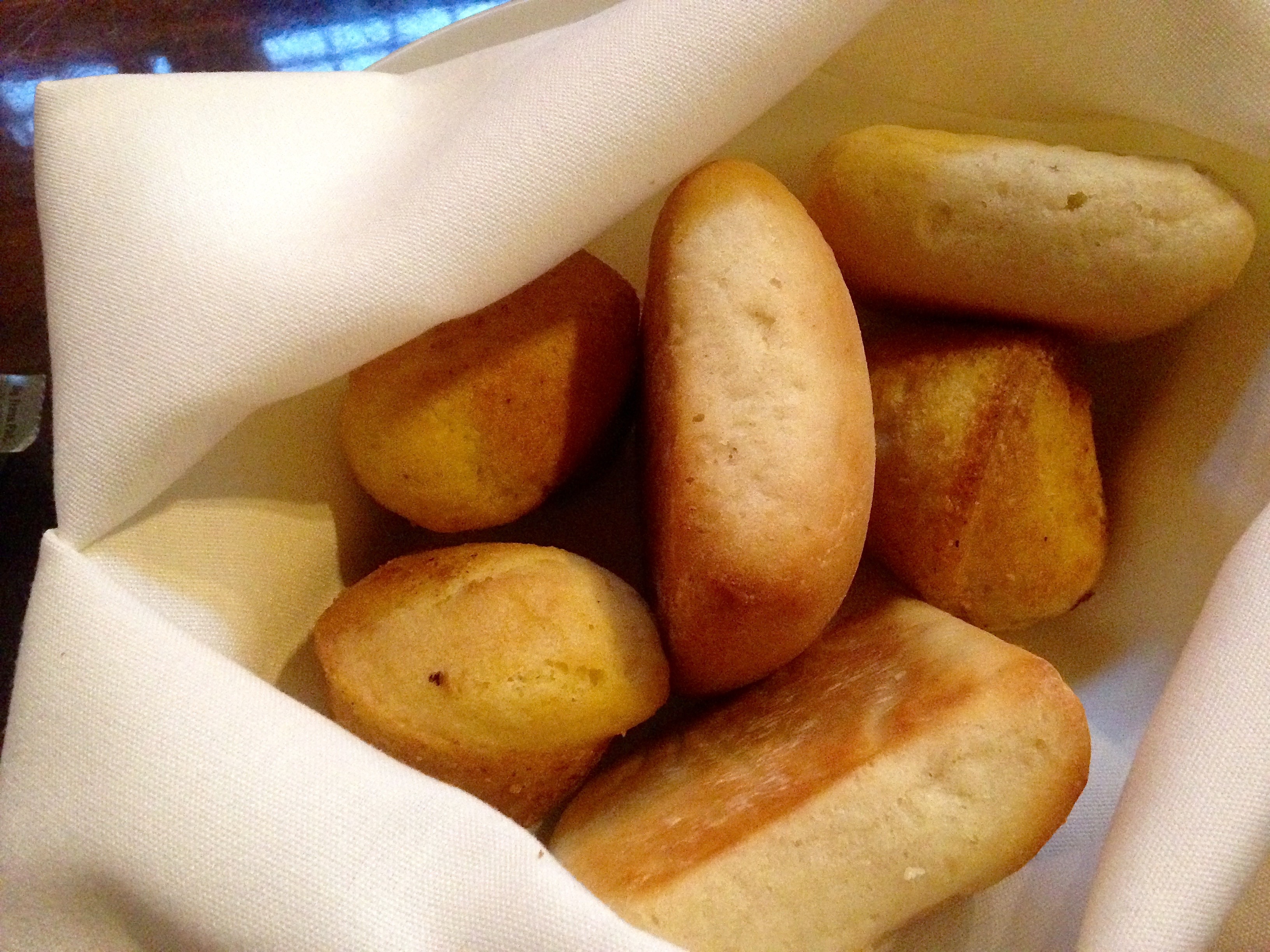 Don’t miss the little cornbread rolls. They are hot and moist and the butter melts right into them. Order more if you can.