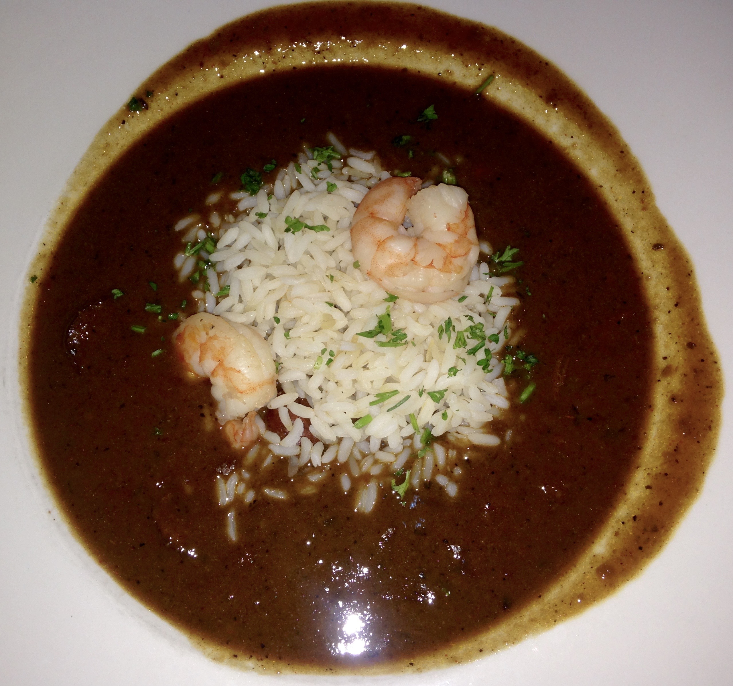 Eve isn’t that hungry, and orders a bowl of gumbo.