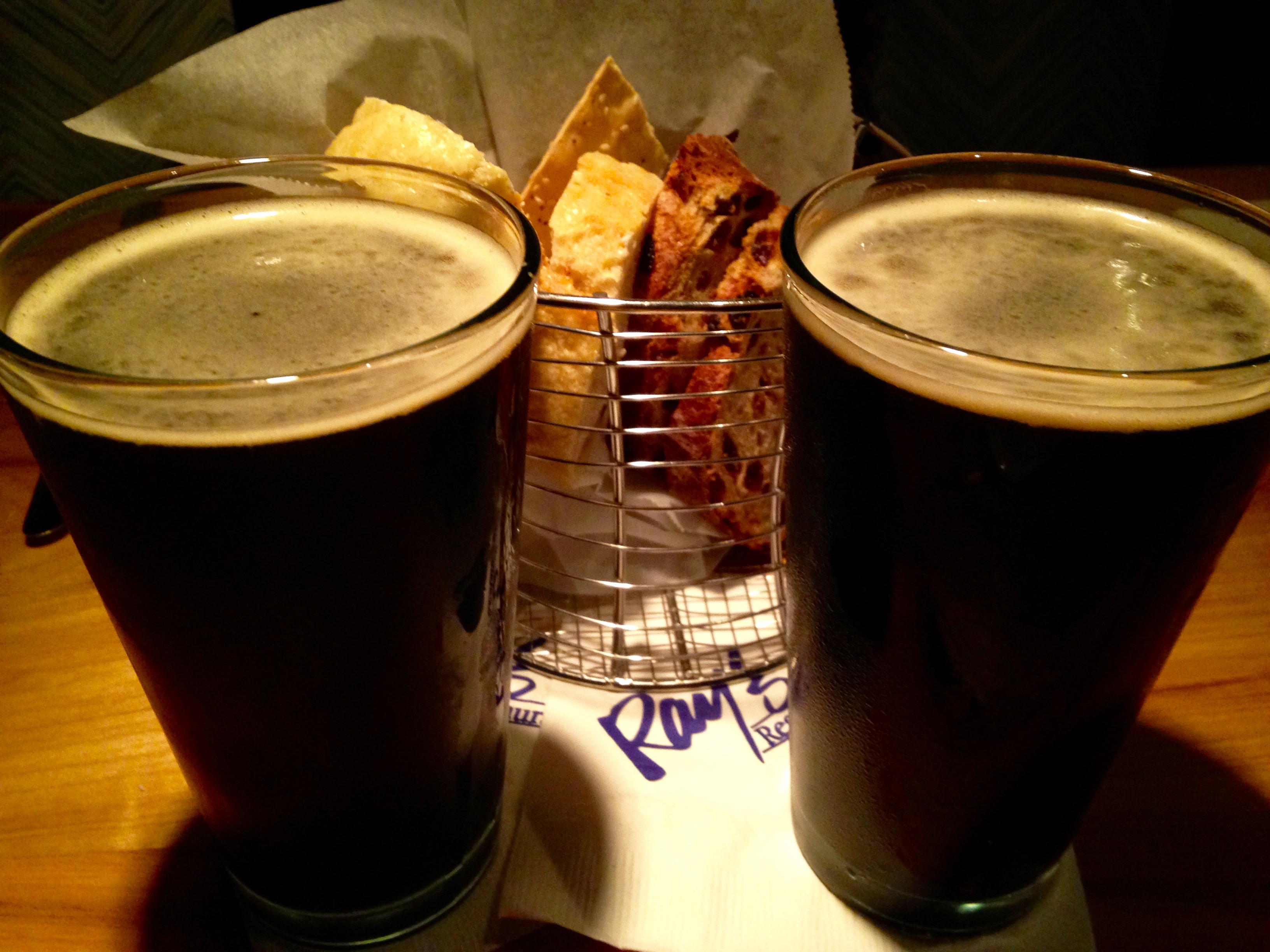 Monday Night Drafty Kilt that’s aged in bourbon barrels is one of the best beers we have had this year. If you see this on a menu, drink it up, because it’s hard to find. Better yet, get something else so that there’s more for us to drink! Our beer is delivered right after our bread basket.