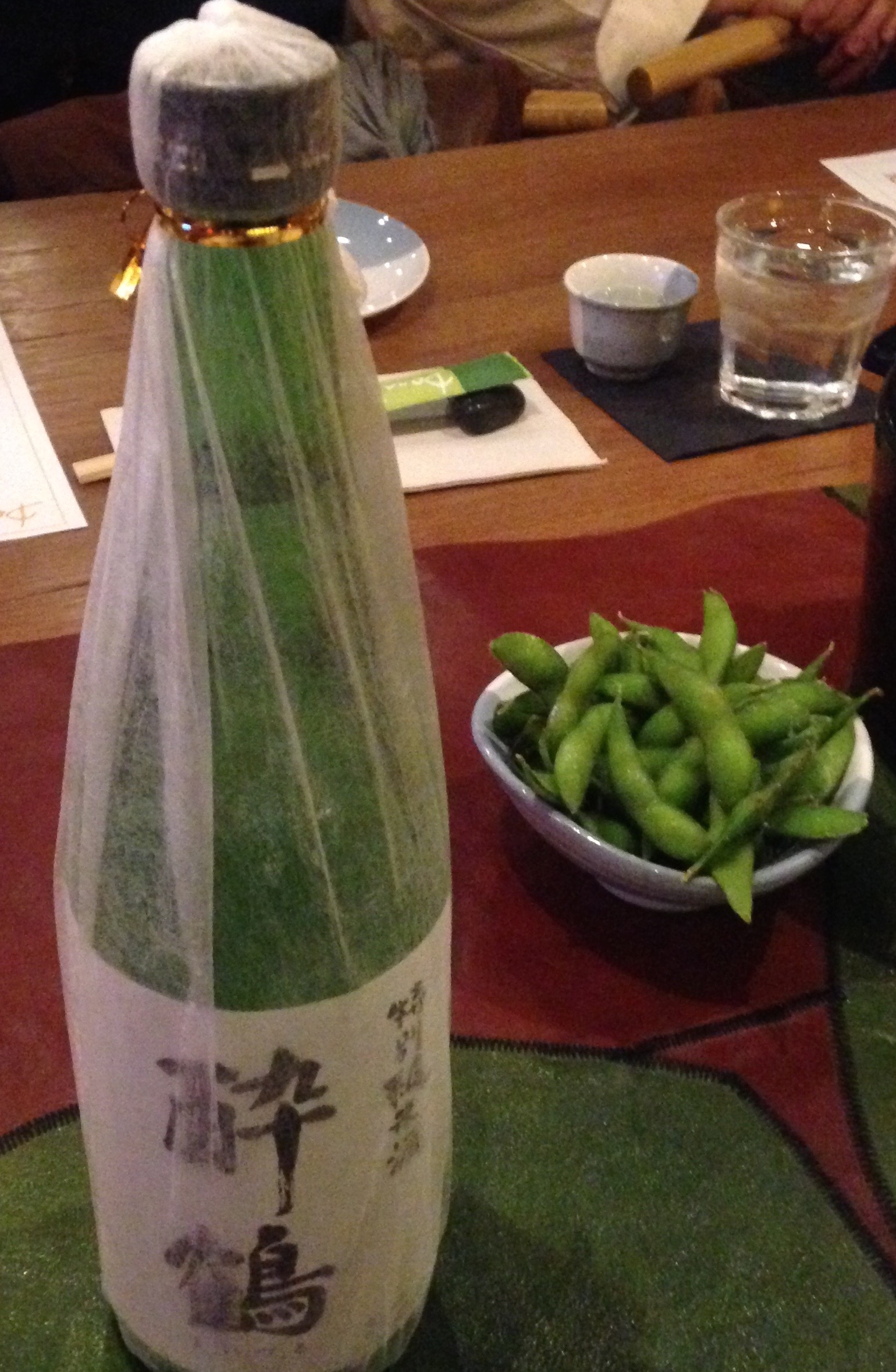 Translated, the label says this: it’s 15% alcohol and we are cheap dates, so go slow. Kanpai! (Cheers in Japanese. We learn a lot tonight.)