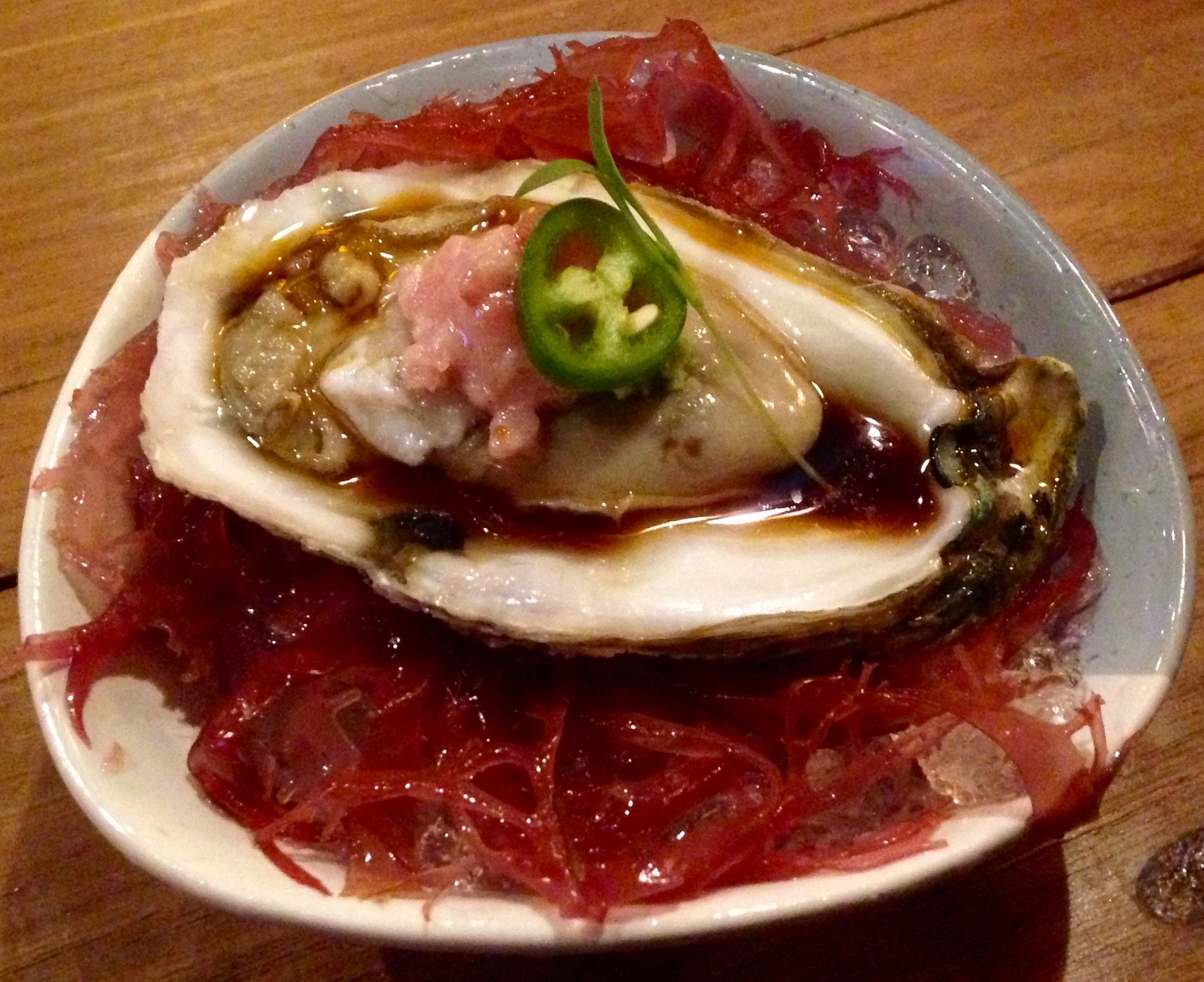 As you look at tonight’s meal, notice all of the workmanship that goes into each dish. Sure, this is an oyster, but look at how someone has to put it in ice, cover the ice in seaweed, then top the oyster with three more layers. It’s almost a shame to eat.